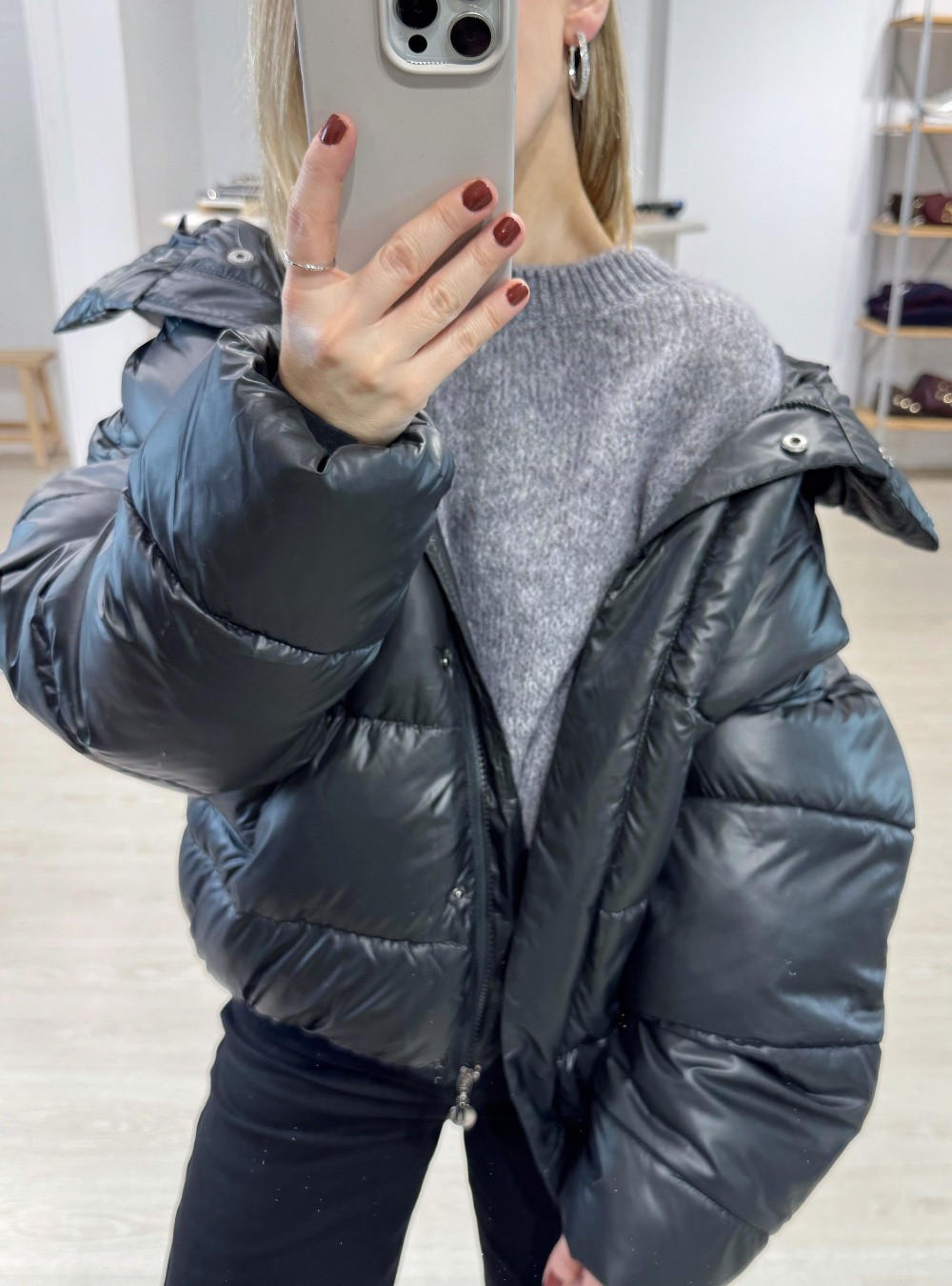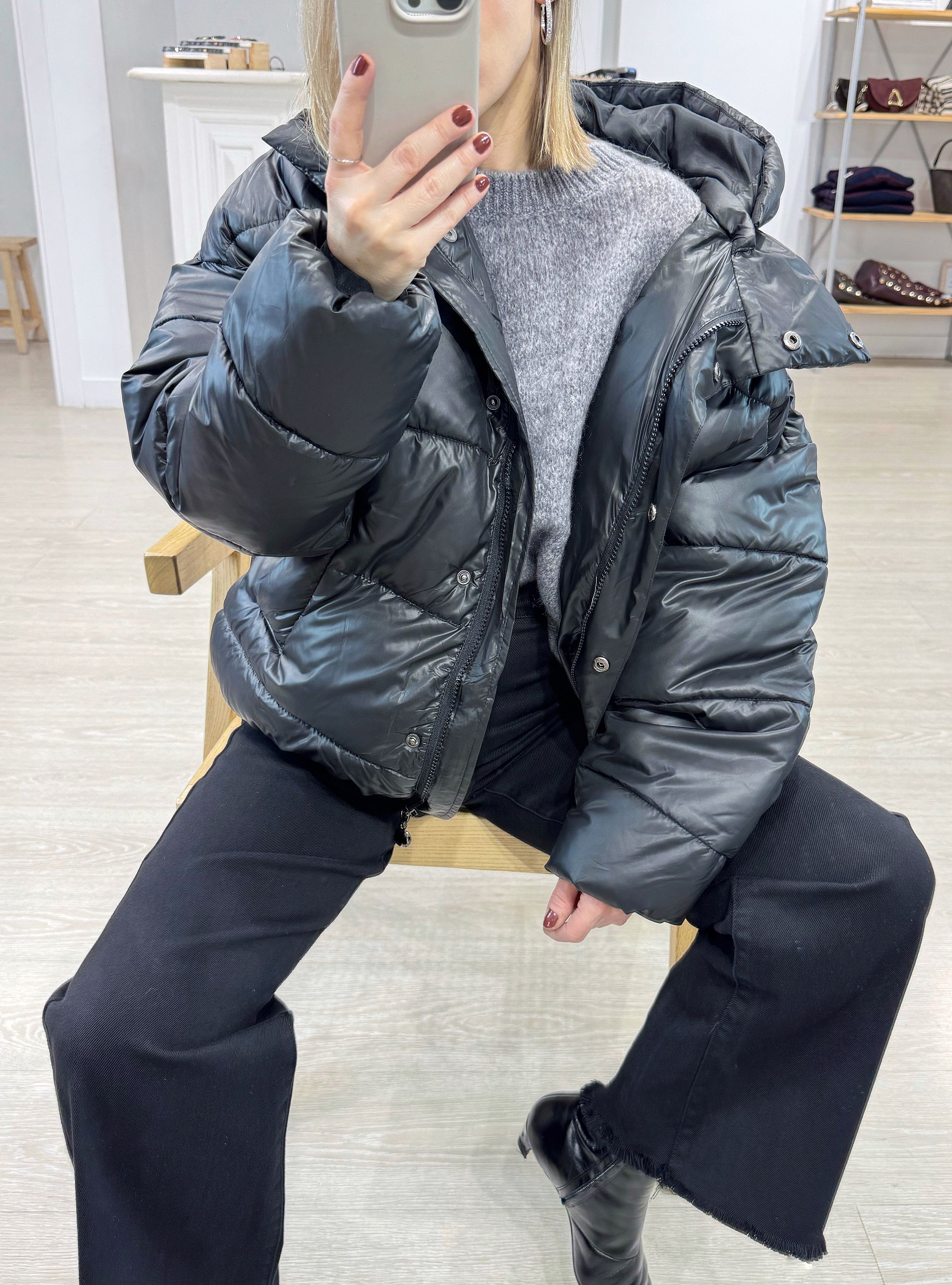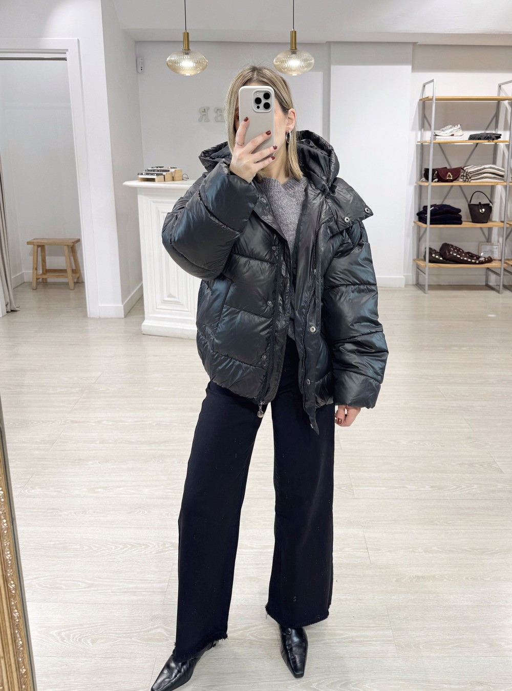 Abrigo acolchado de corte holgado. Dos bolsillos. Capucha desmontable por medio de cremallera. No pesa nada. Es un fondo de armario atemporal que te salvará en los días más fríos.