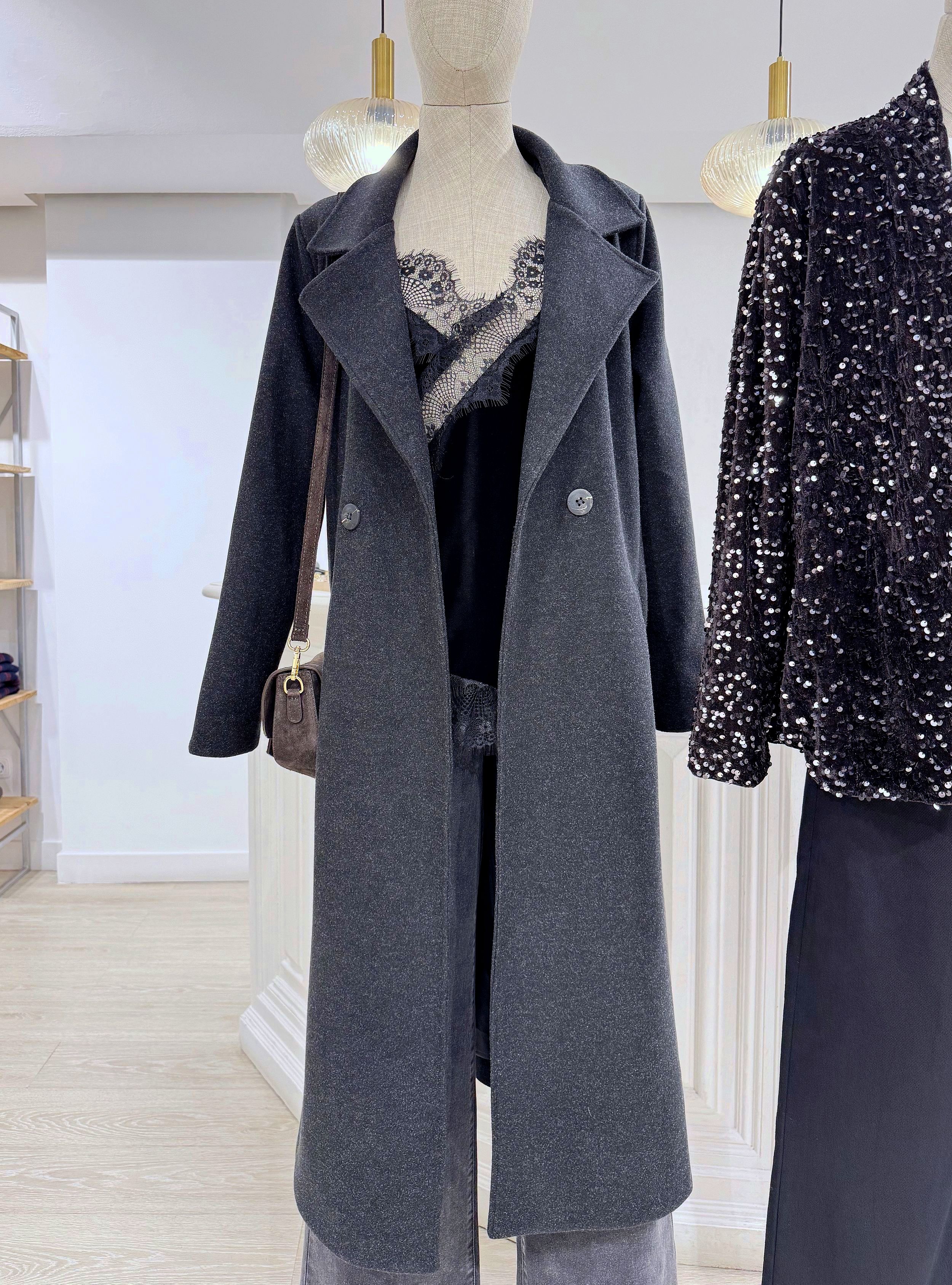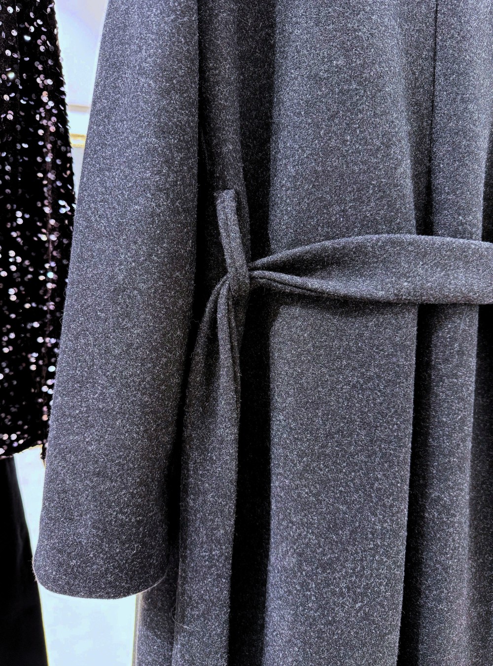 Abrigo largo de paño con cinturón del mismo tejido. Dos bolsillos. Tejido suave. Es una prenda increíble de fondo de armario que te acompañará temporada tras temporada.