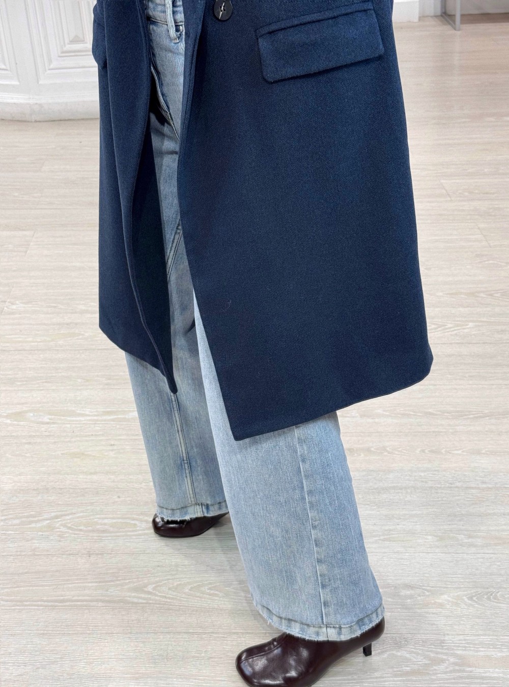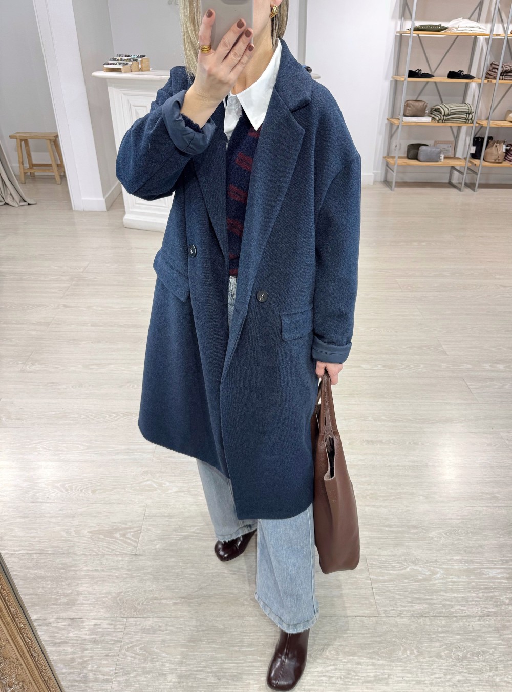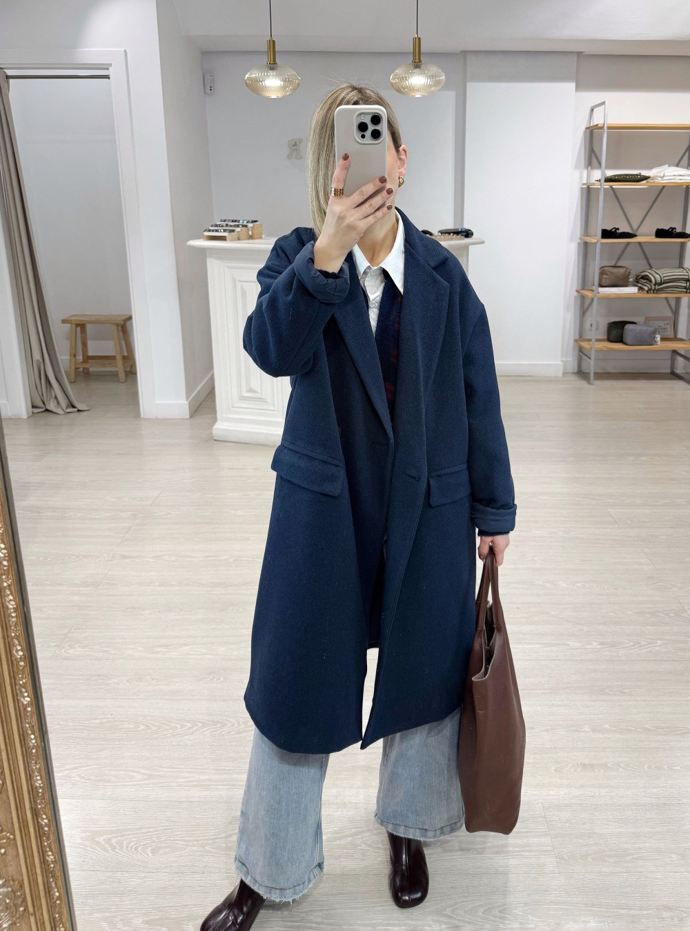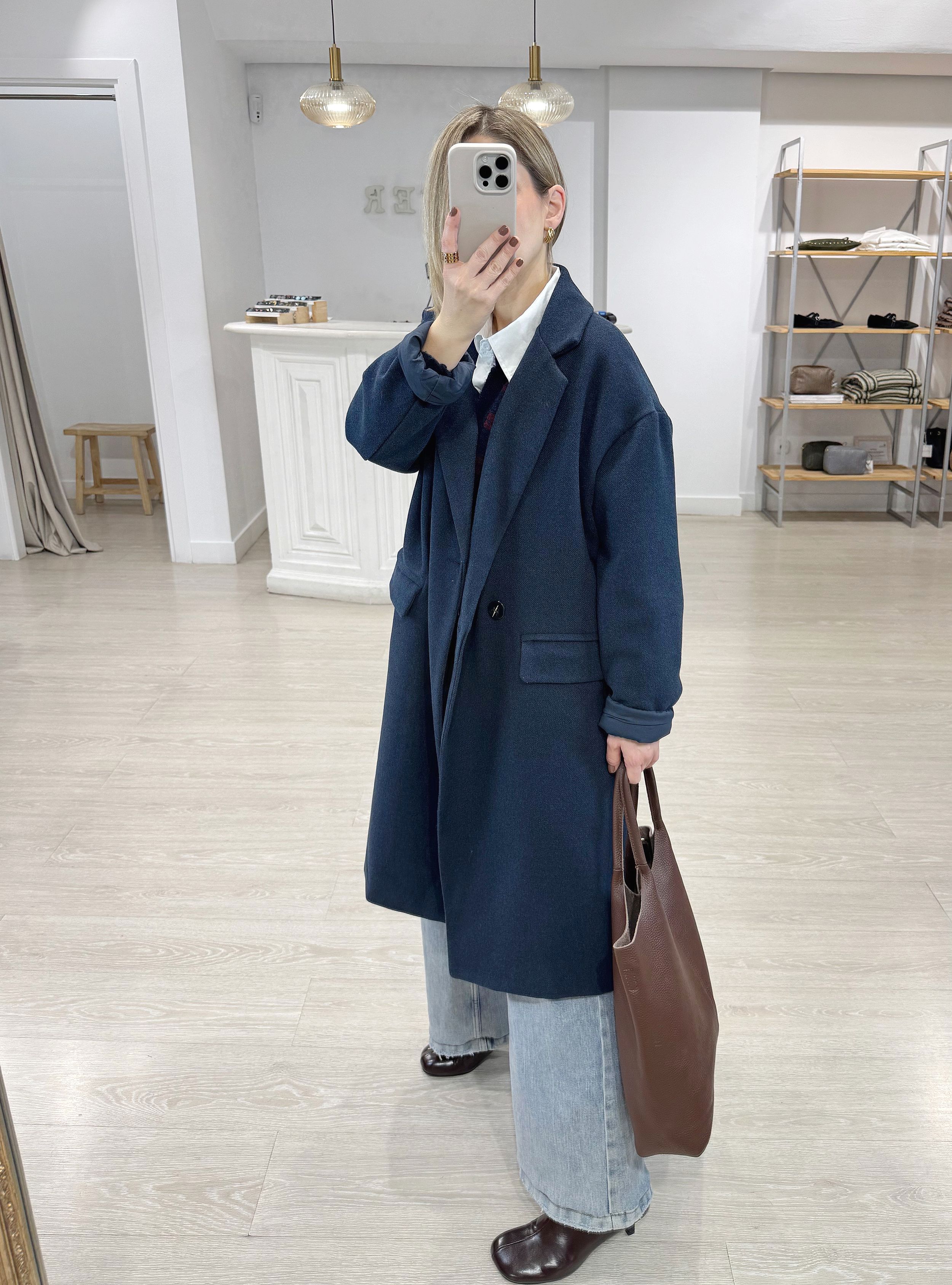 Abrigo largo de corte oversize. Cuello solapa. Dos bolsillos. Es un fondo de armario genial por lo fácil de mezclar que resulta.