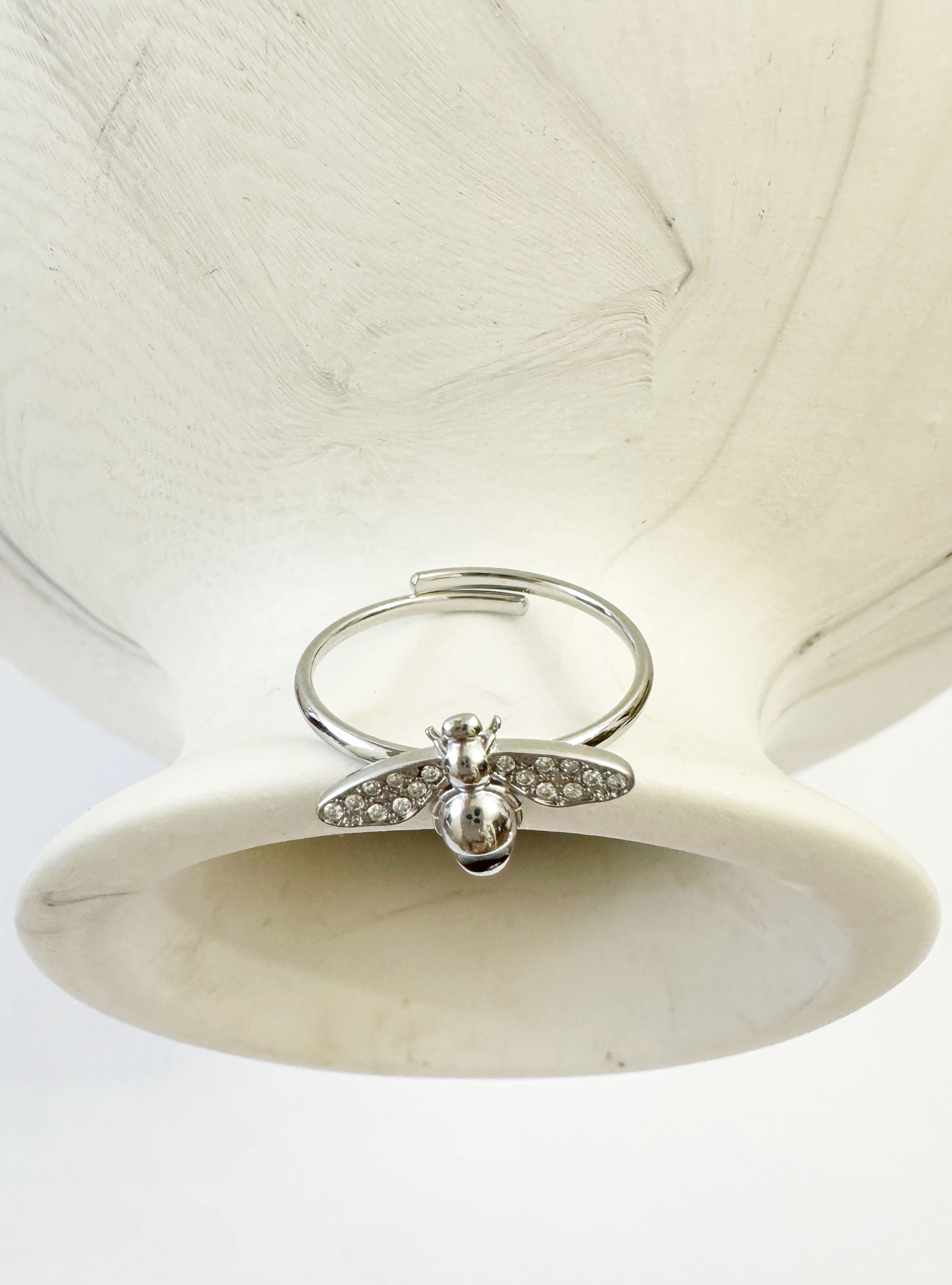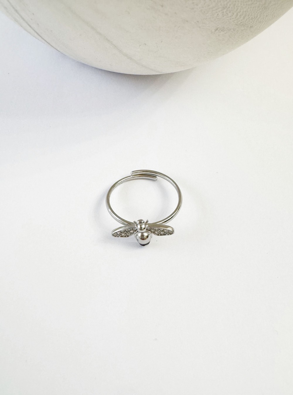 Anillo regulable con forma de abeja con pequeñas circonitas.