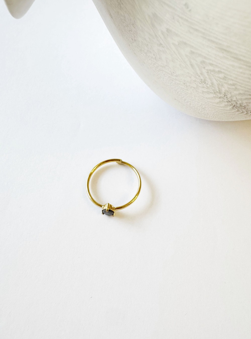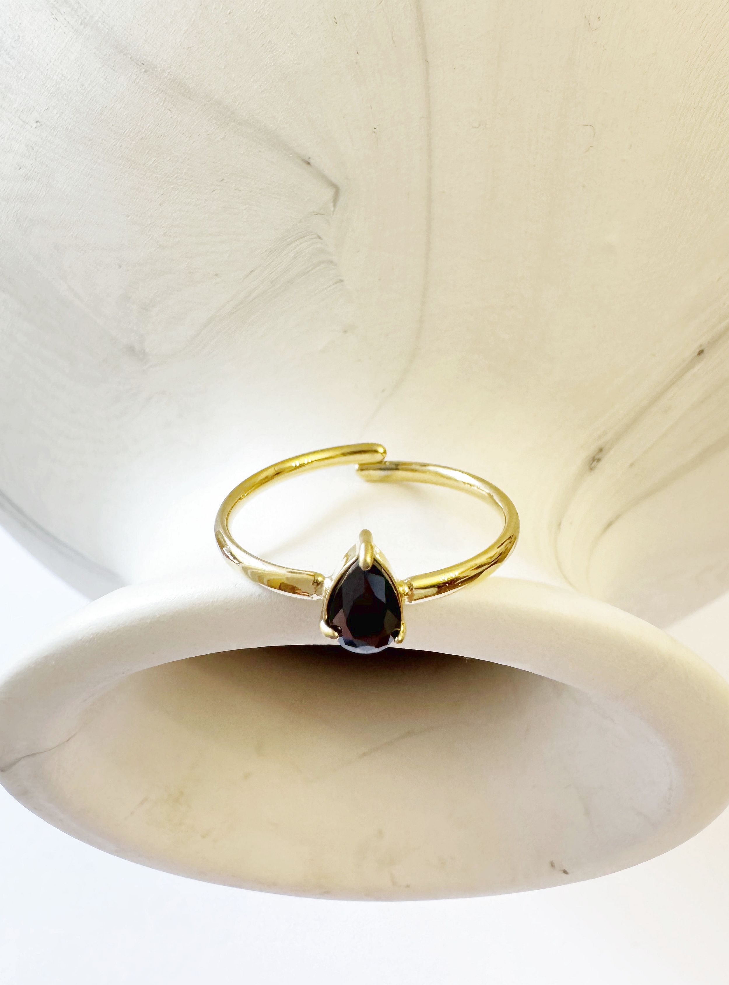 Anillo fino regulable con detalle de brillo en color negro.