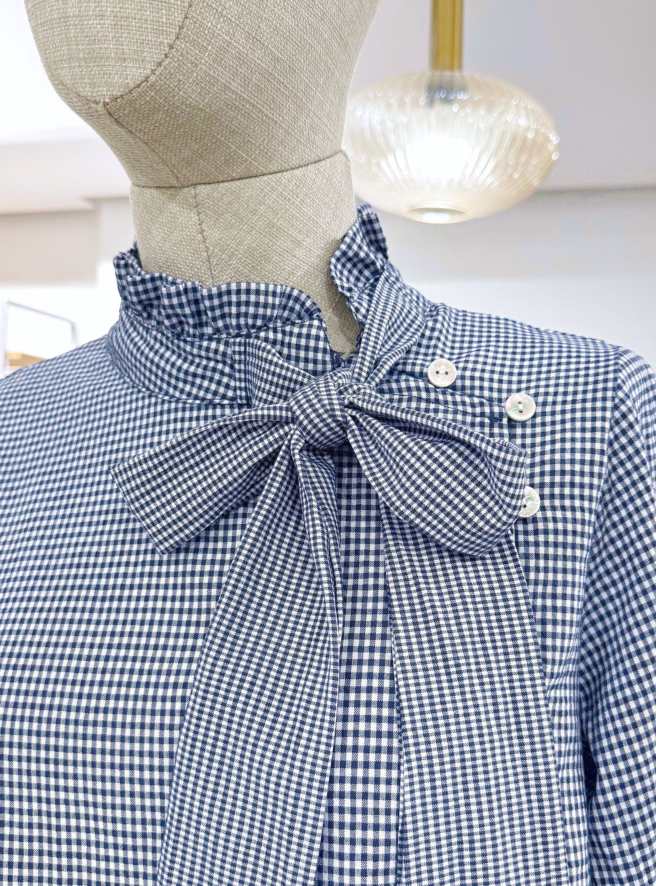 Blusa con estampado de cuadros vivhy. Cierre por medio de botones y un lazo del mismo tejido. Corte holgado. Puedes mezclarlo con tu jeans favorito y unas zapatillas para un look donde la protagonista absoluta sea la blusa.