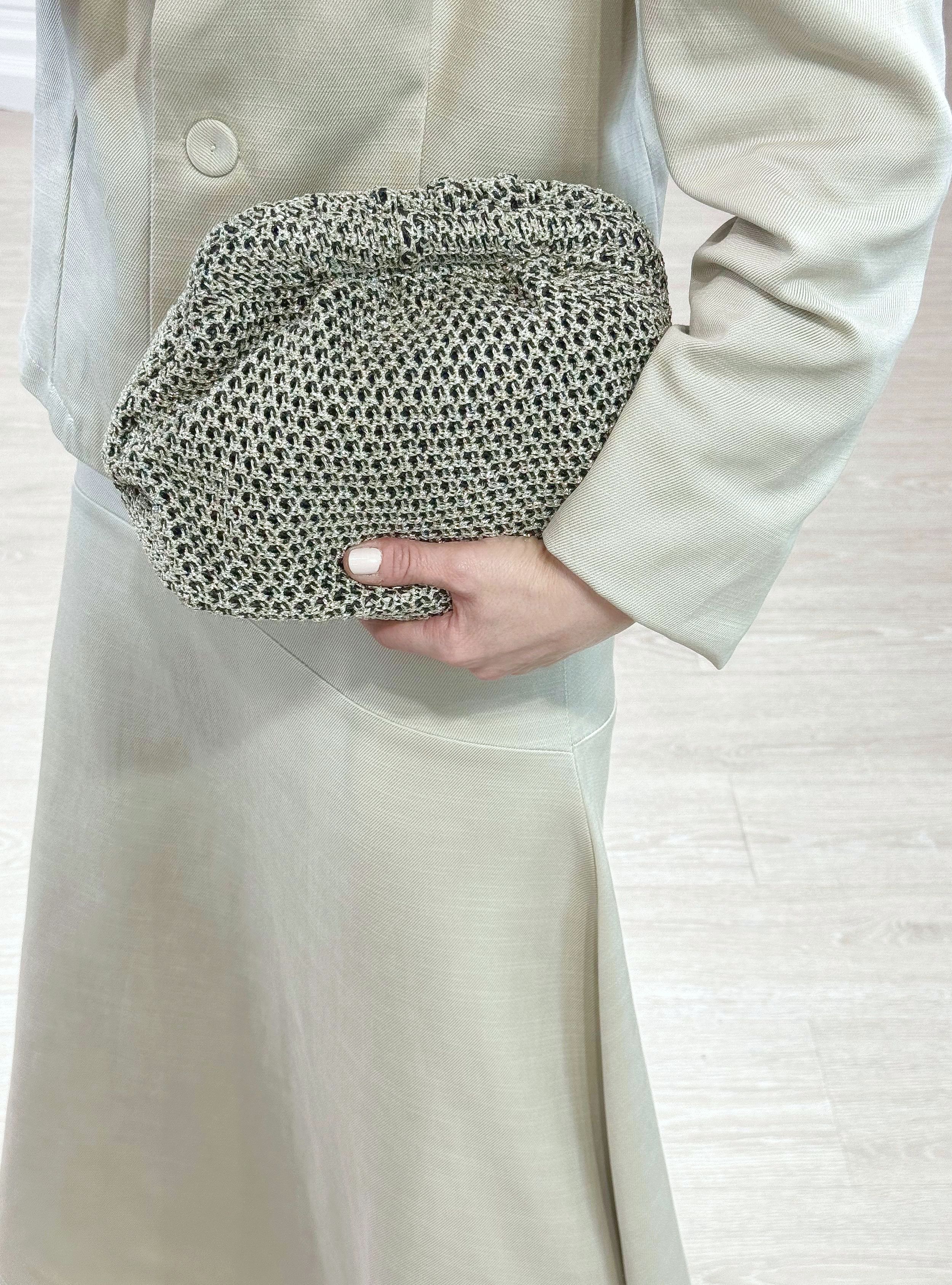 Bolso tipo monedero en tejido de red. Tiene una cadena dorada para llevarlo a modo bandolera.