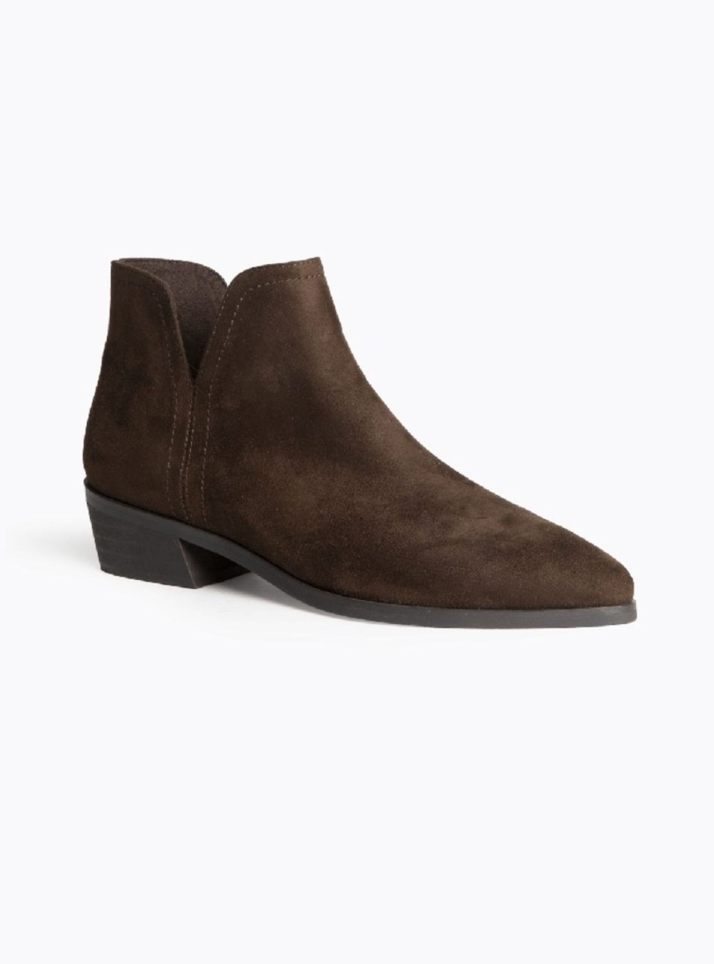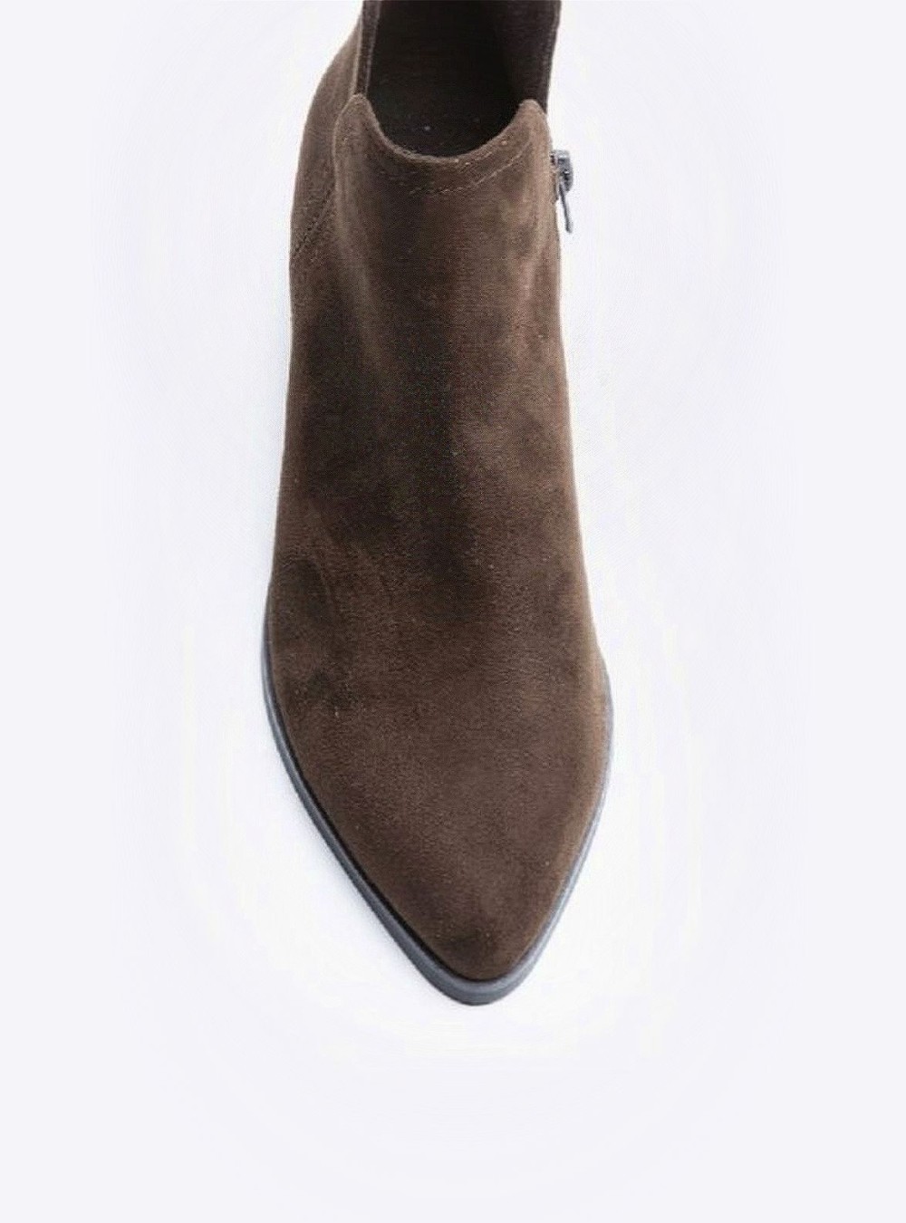 Botín de tacón bajo con cremallera por el interior para facilitar el calzado. Efecto ante. Es un botín muy cómodo que podrás combinar con facilidad en casi cualquier look.