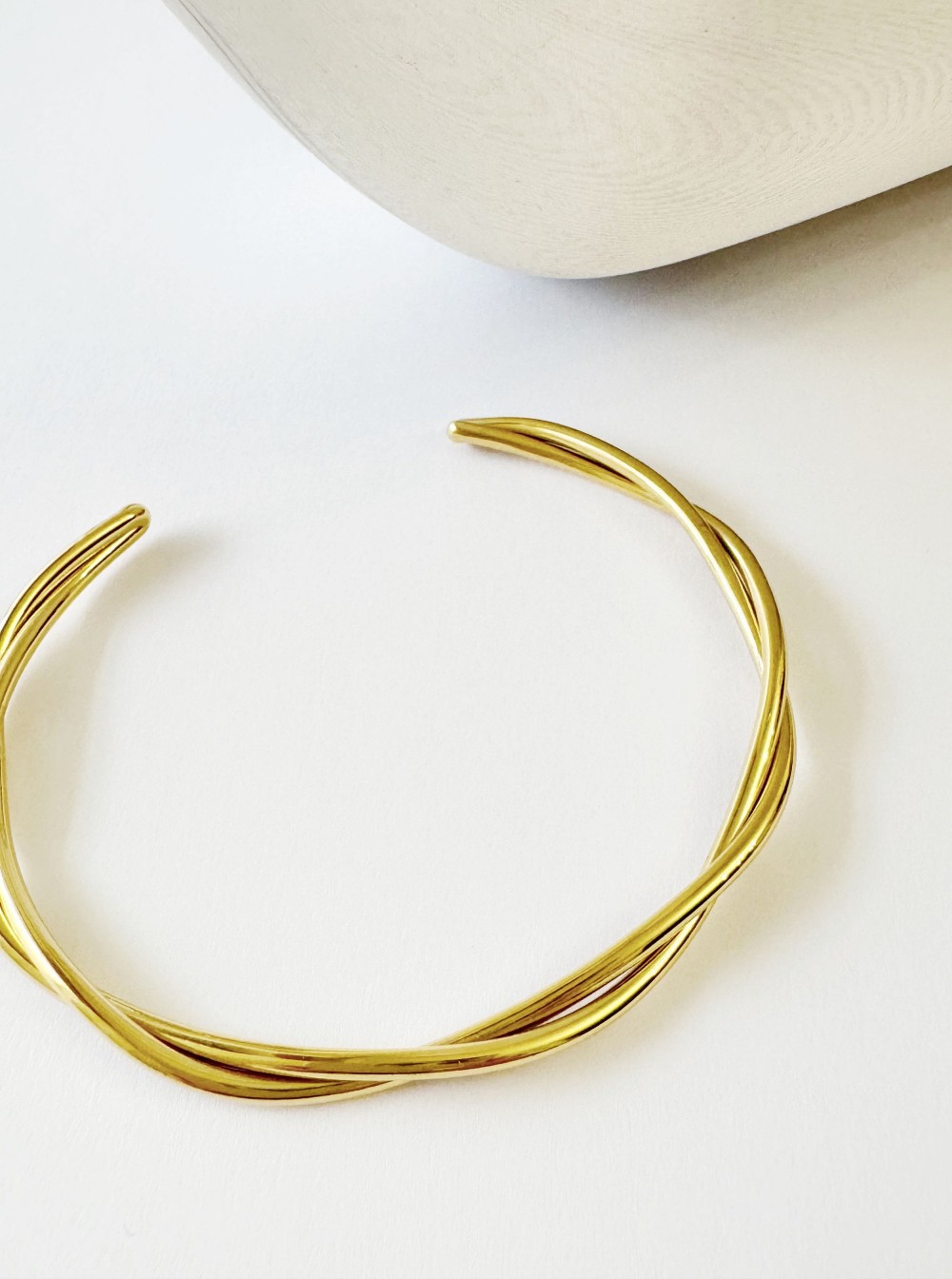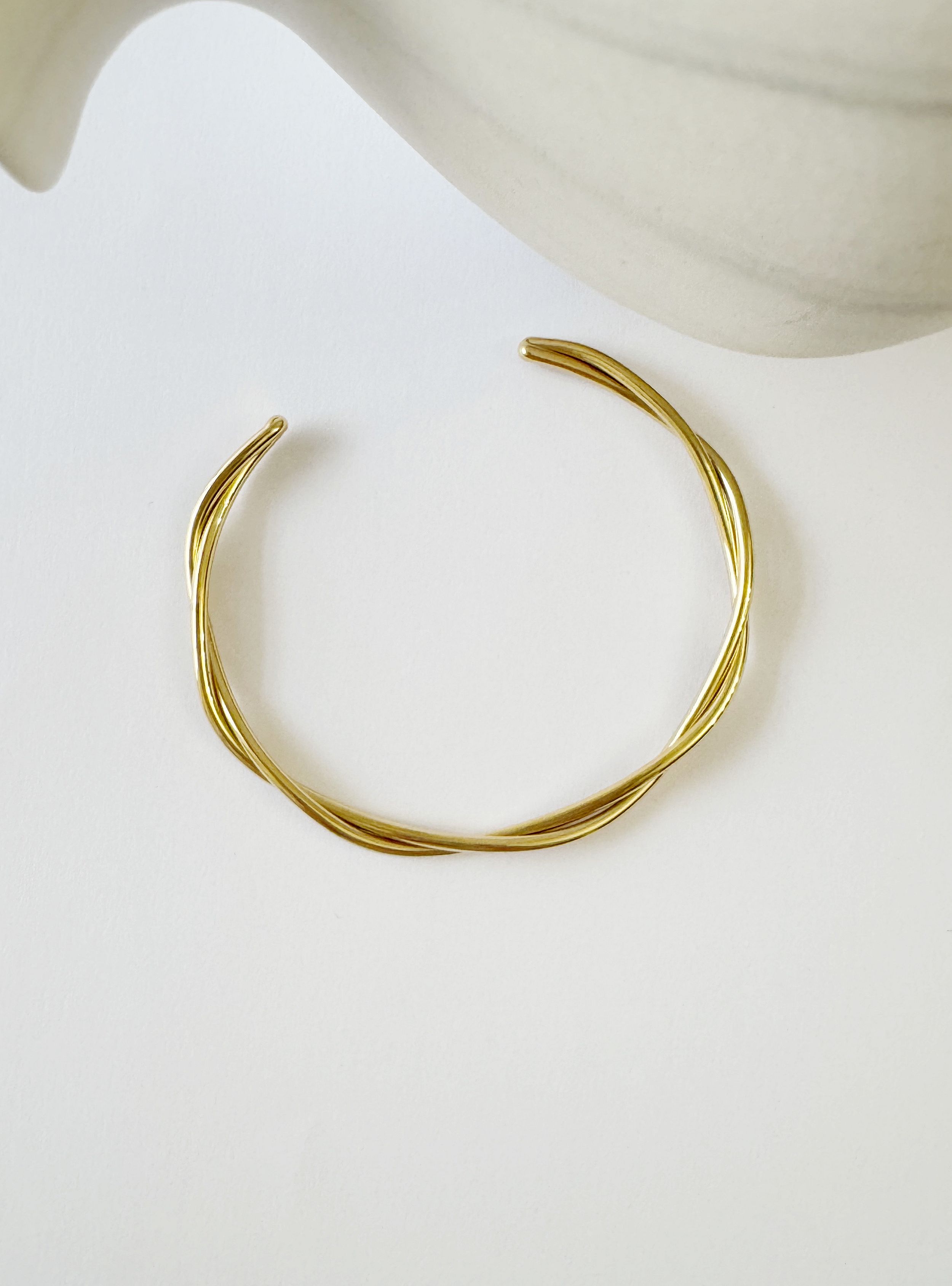 Brazalete abierto de acero inox. con dos hilos entrelazados.
