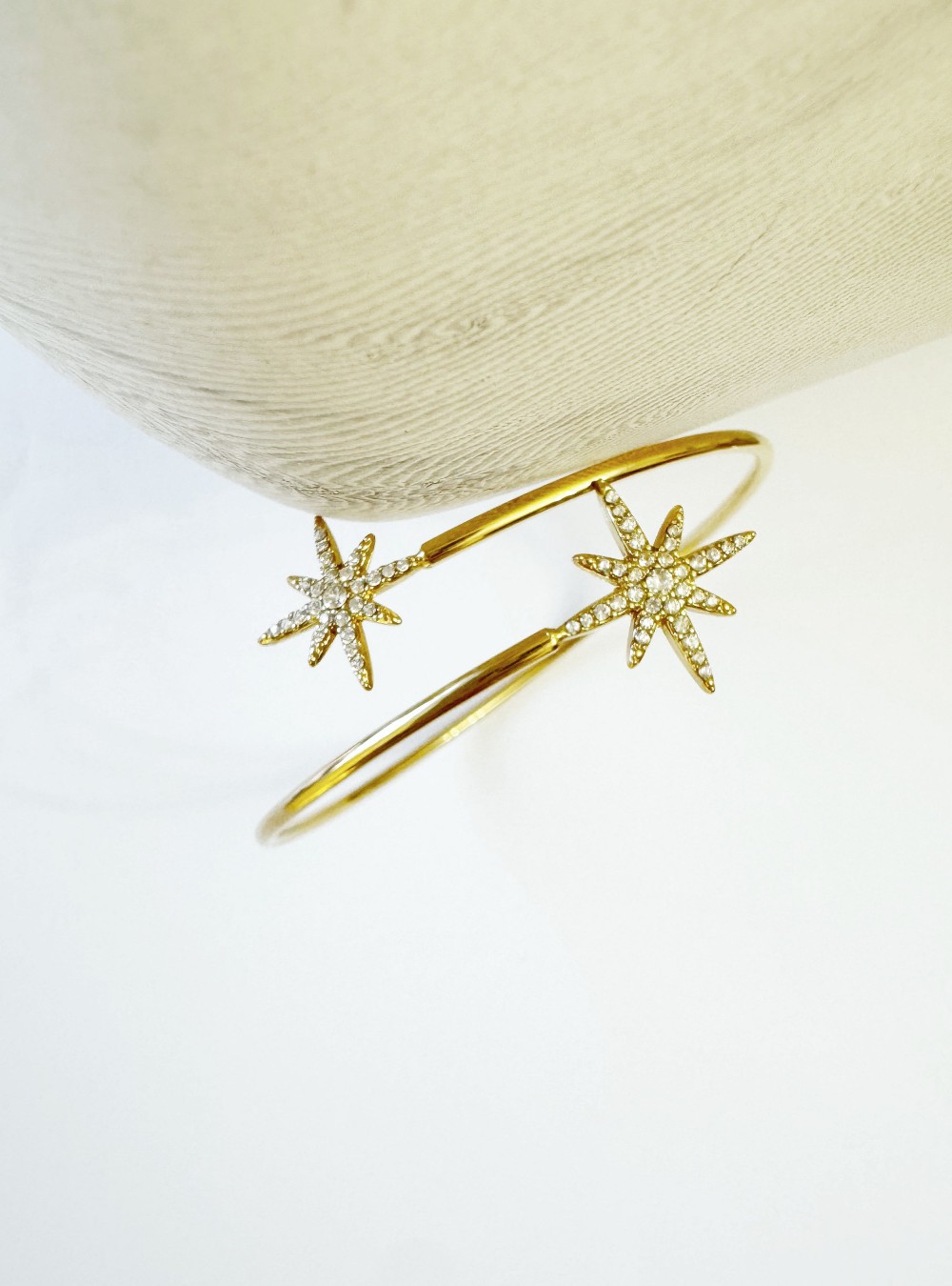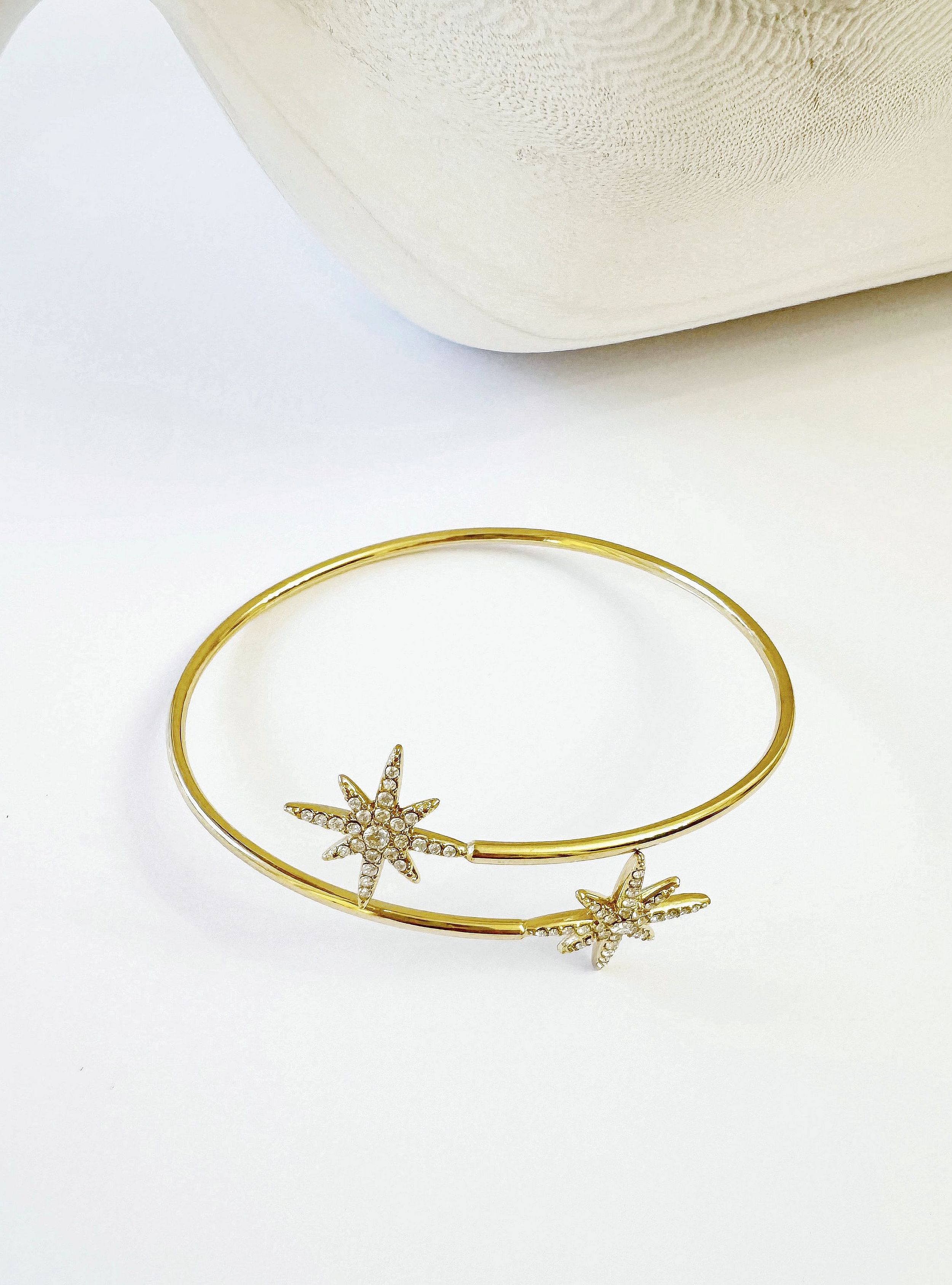 Brazalete fino en acero regulable con estrellas de circonitas.