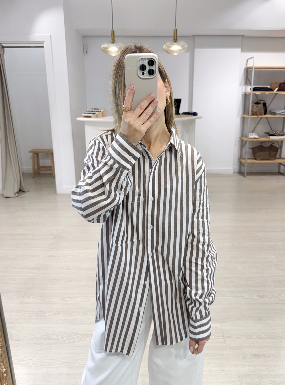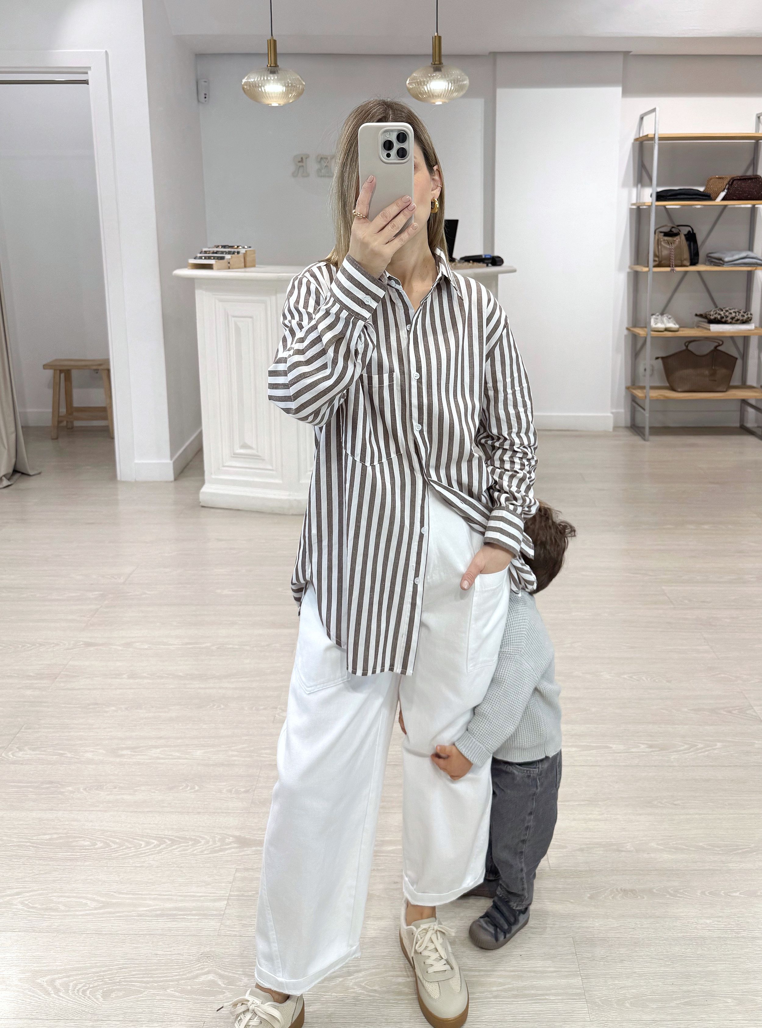 Camisa de corte recto en tejido de algodón. Cuello camisero y cierre por botones. Bolsillo de parche en la parte izquierda del pecho. Es una prenda perfecta para tus looks diarios combinándola con jeans y faldas denim.