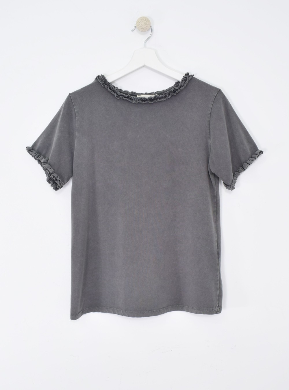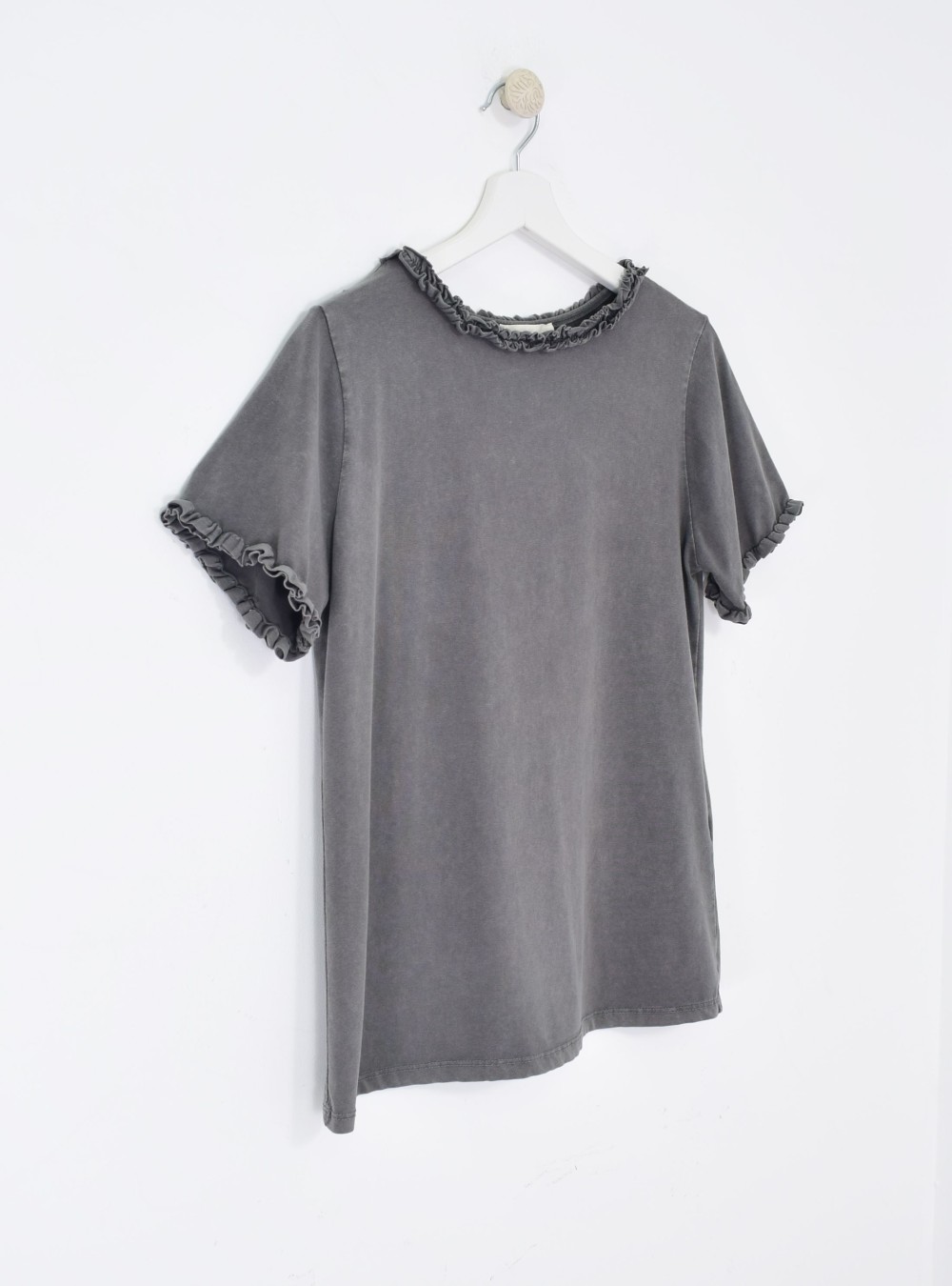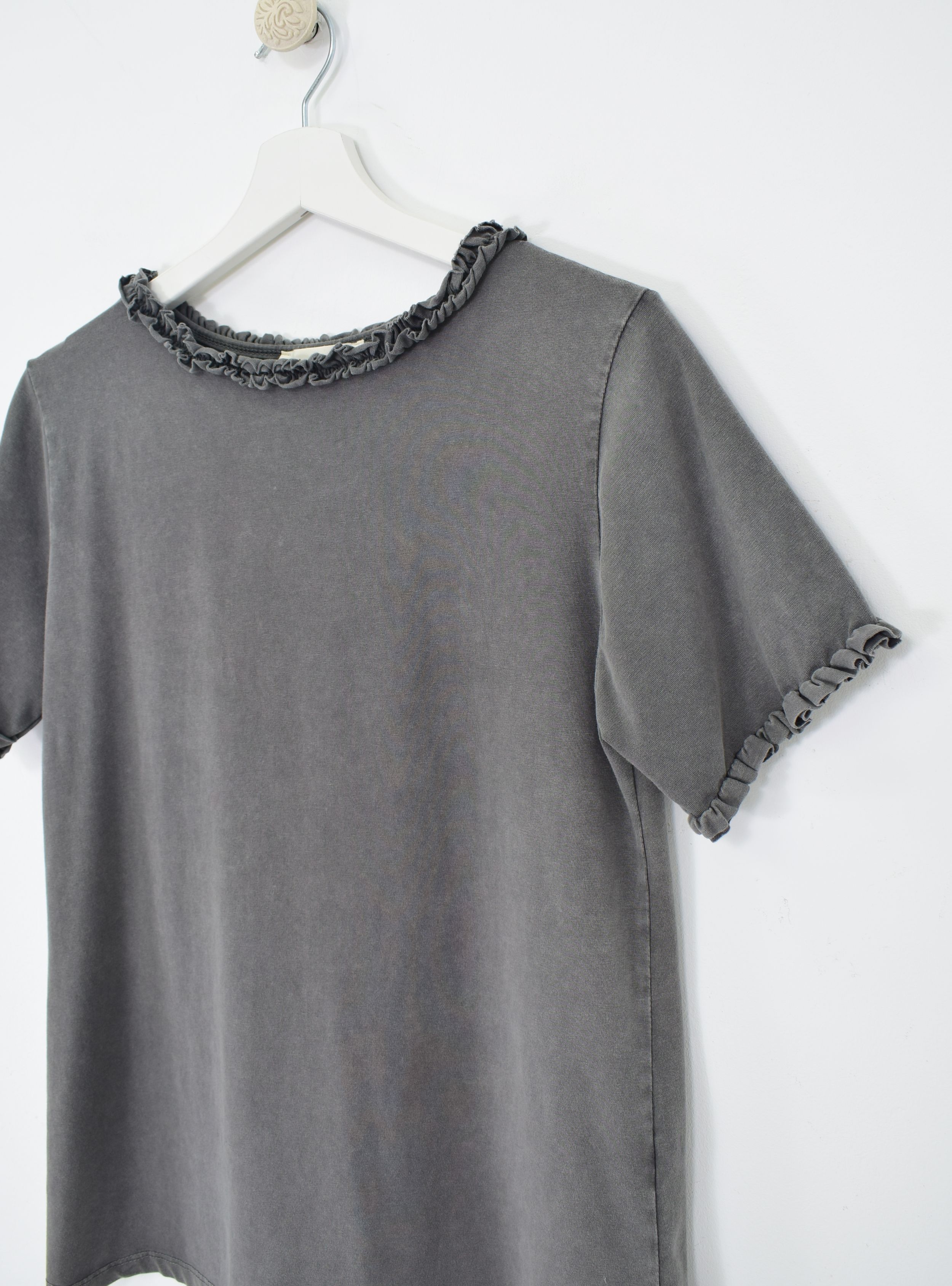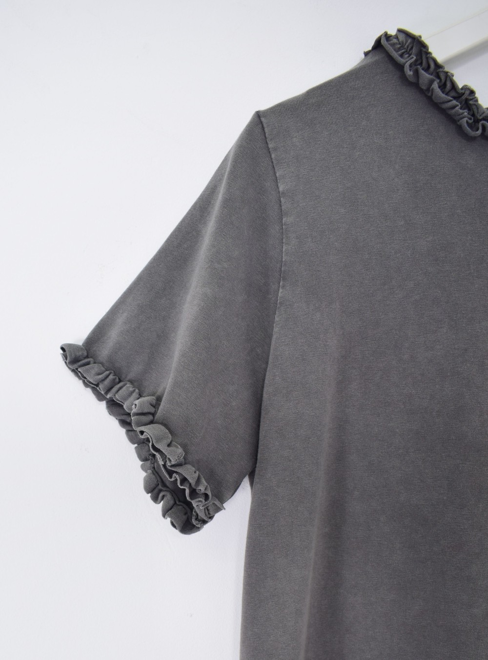 Camiseta de manga corta en tejido de algodón 100%. Cuello redondo. Tejido muy suave con cierto efecto deslavado. Corte holgado.