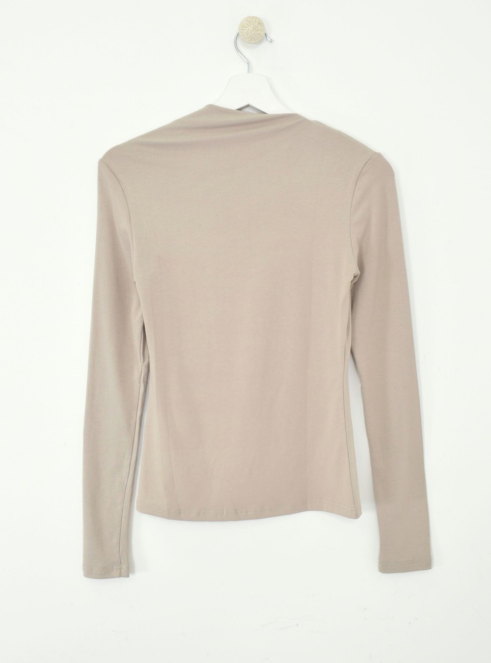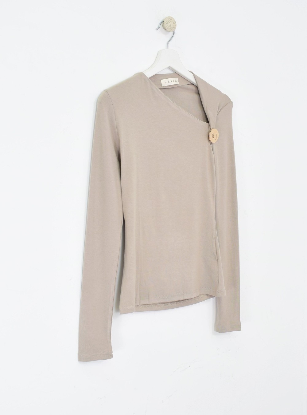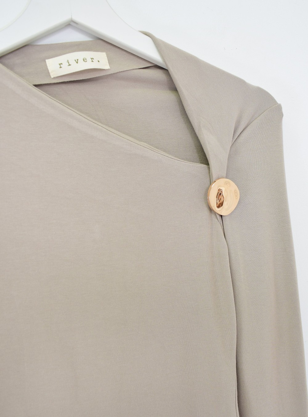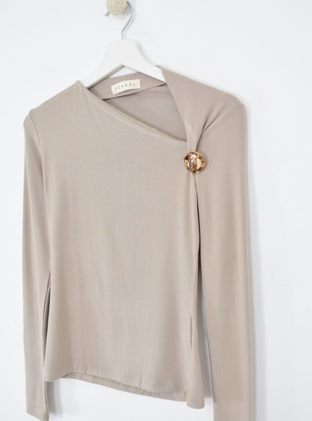 Camiseta ajustada con el escote asimétrico y un broche dorado en uno de los lados. Tejido suave que se adapta bien. Puedes mezclarla con la Sobrecamisa con bordados para un look increíble de entretiempo.