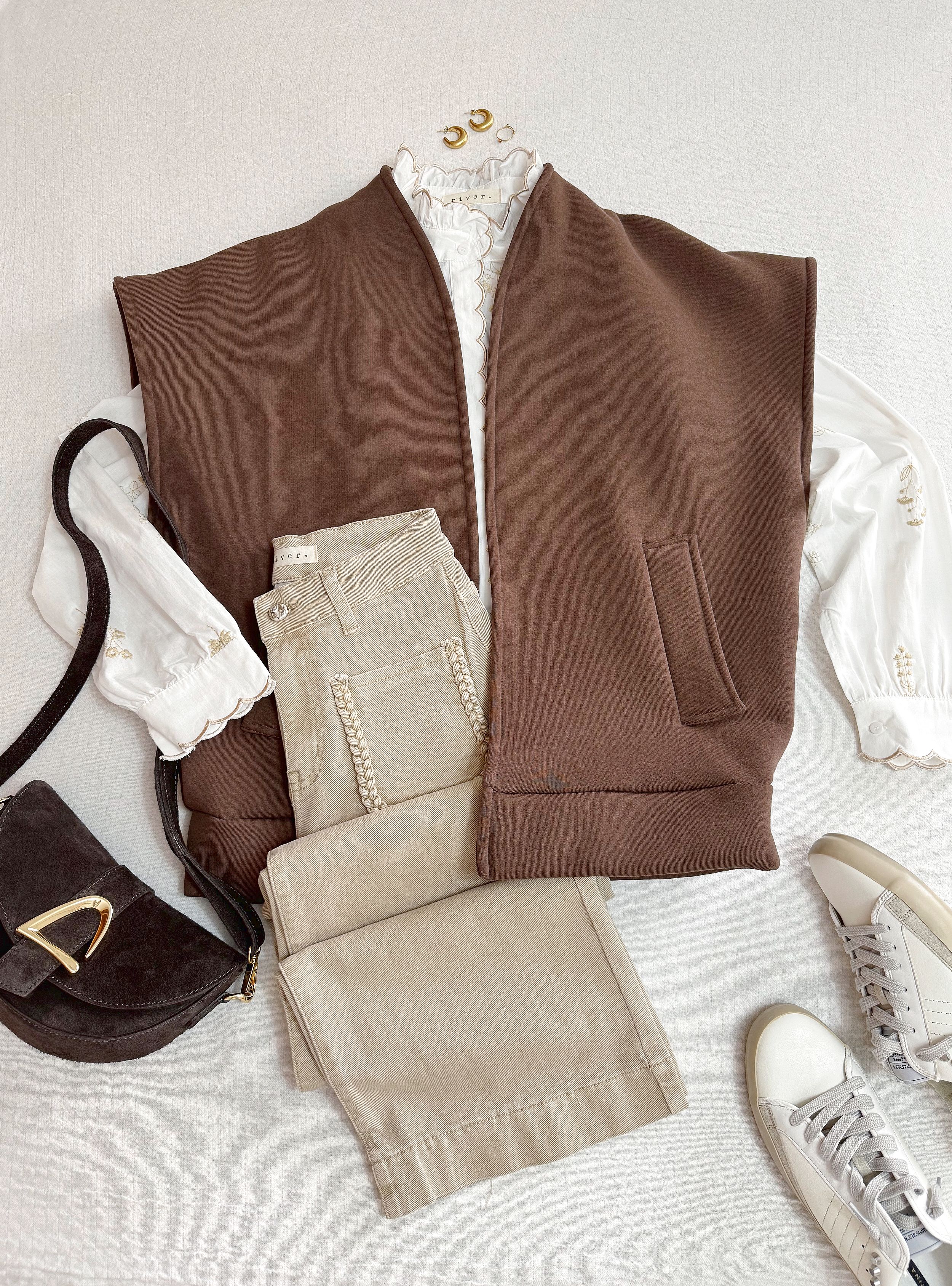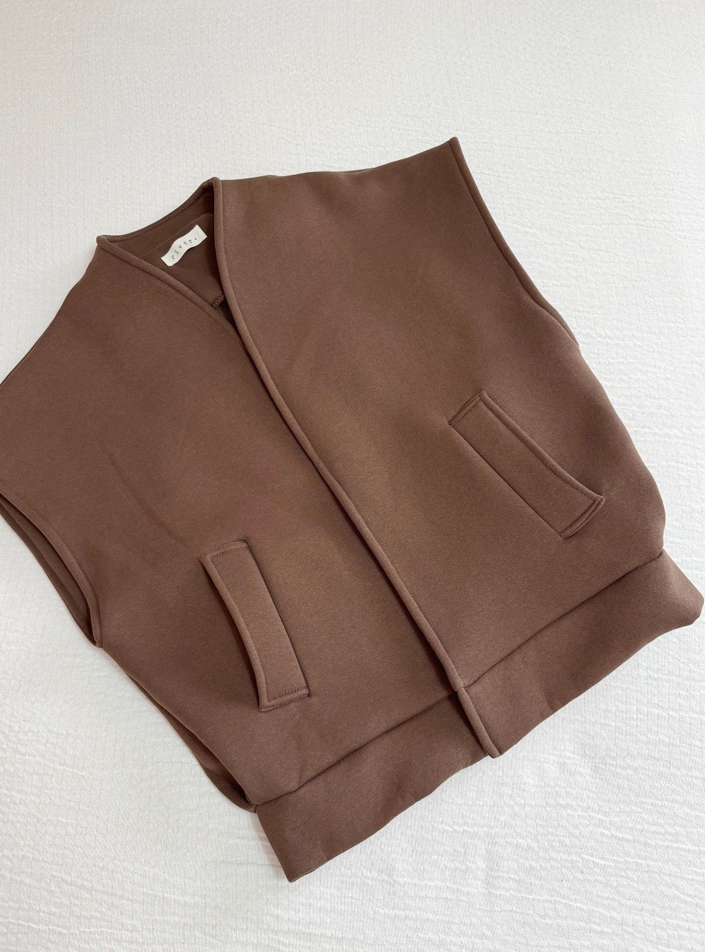 Chaleco de corte oversize en tejido de algodón sin cierre y con dos bolsillos internos en la parte baja. Interior de tejido polar. Prenda perfecta para llevar encima de tus blusas y camisas preferidas combinando con unos jeans o falda denim como parte de abajo.