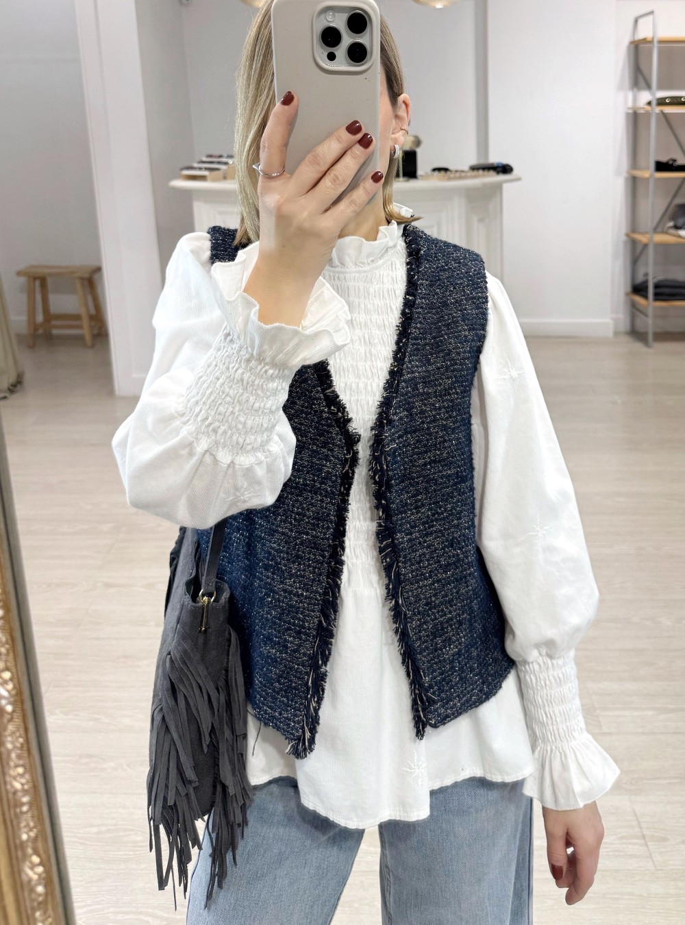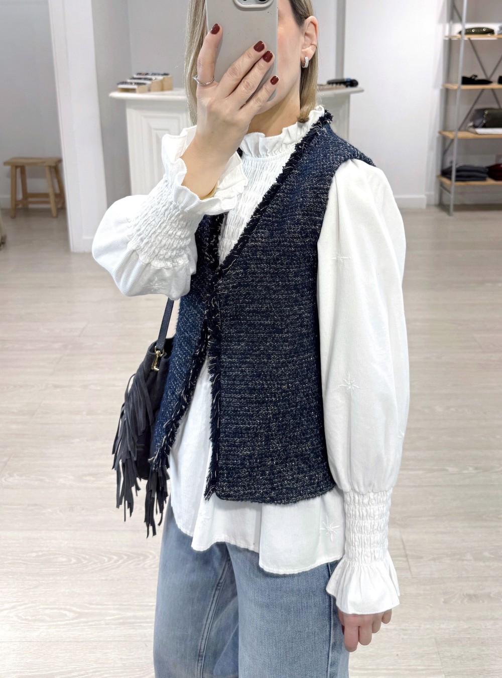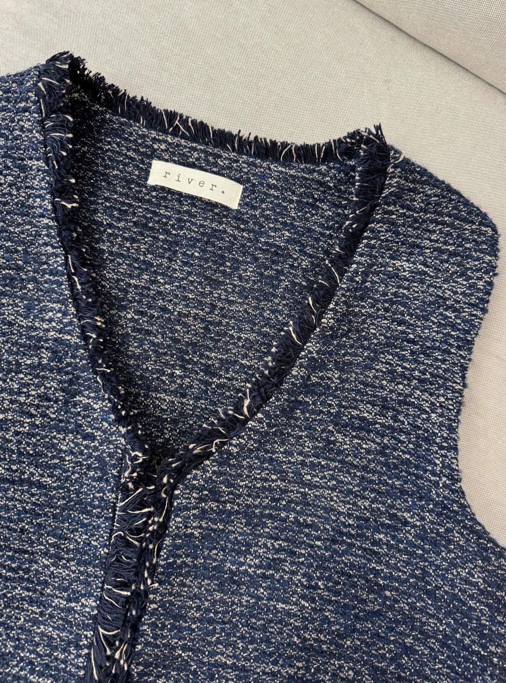 Chaleco jaspeado de corte clásico en tejido de algodón. Puedes mezclarlo con una blusa básico y un jeans para un look de día súper estiloso.
