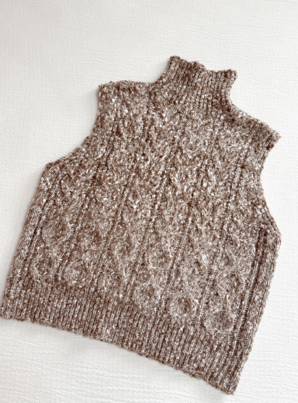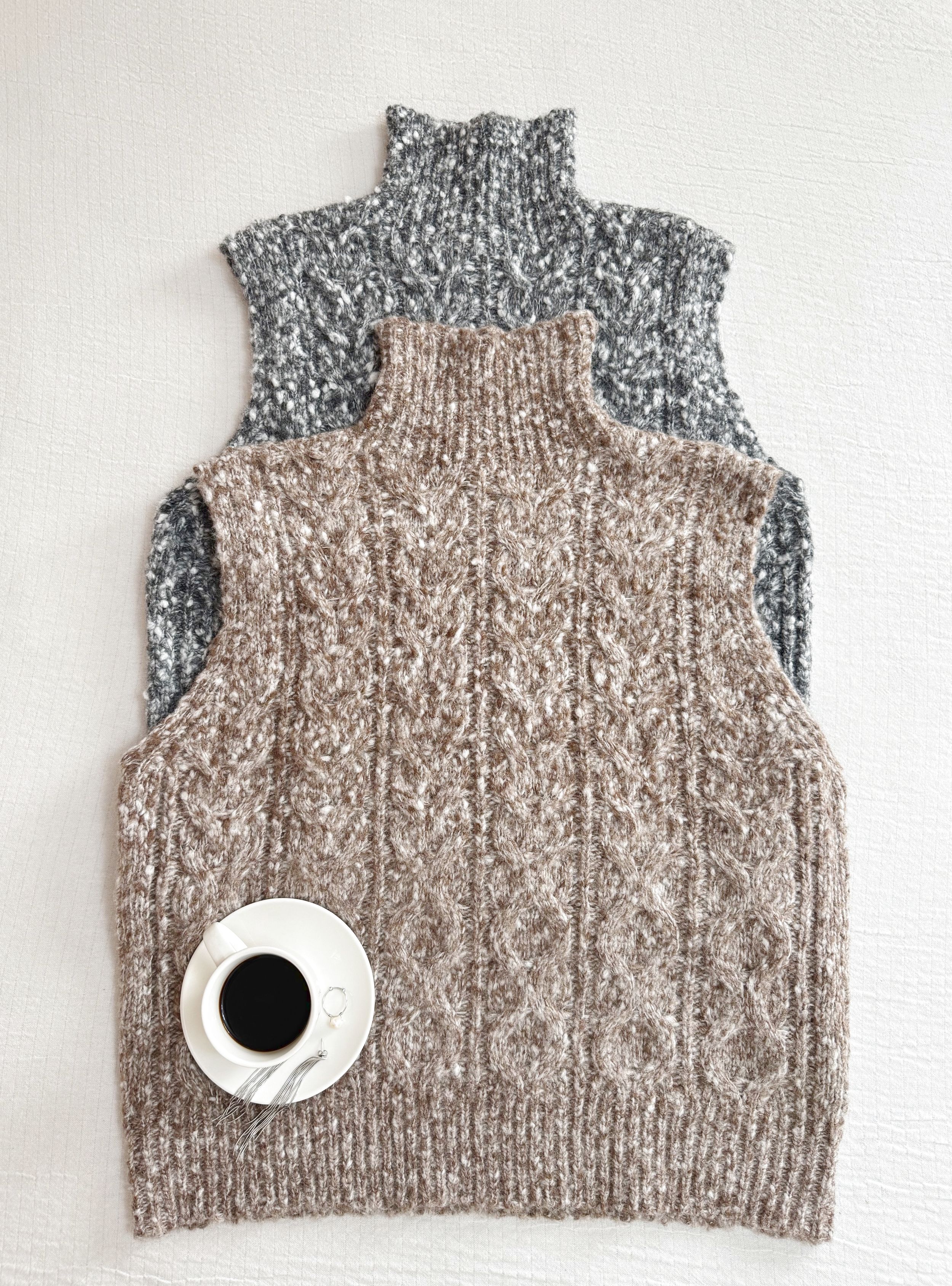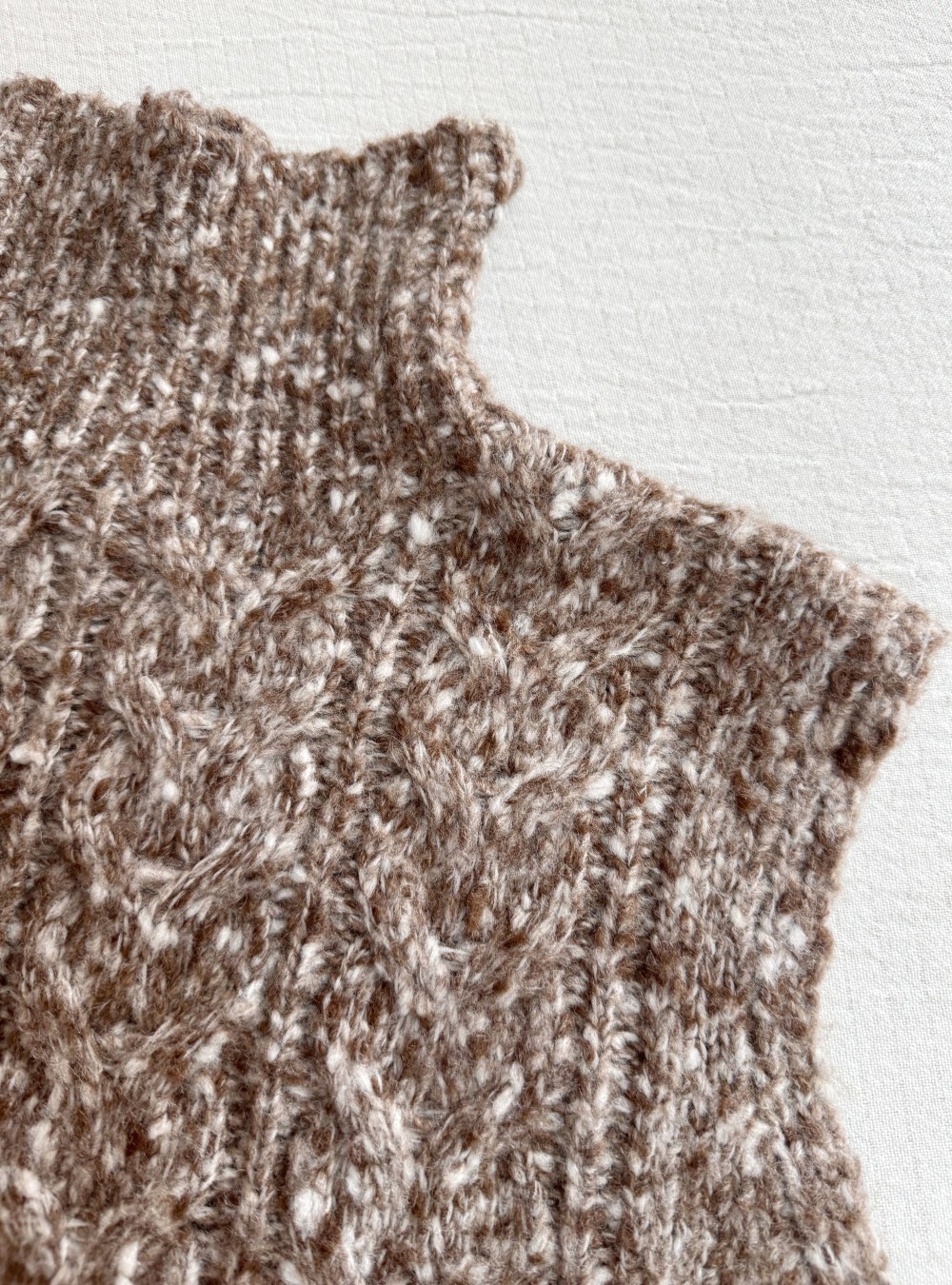Chaleco de punto con ochos. Cuello chimenea. Tejido suave y calentito. Puedes mezclarlo con una blusa de la misma gama de color y tus jeans favoritos para un look de día casi sin esfuerzo.