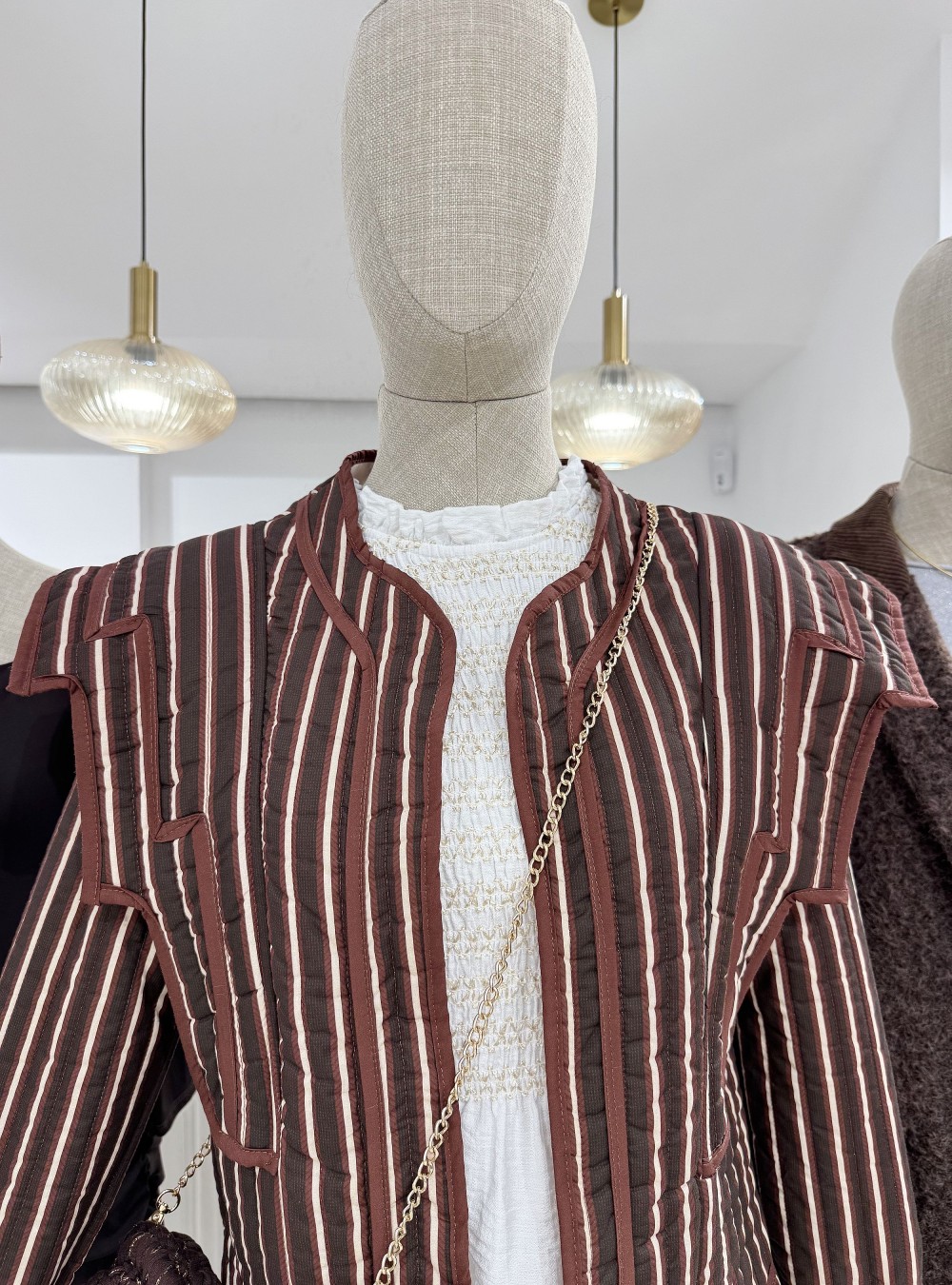 Chaqueta acolchada con rayas en tejido de algodón 100%. Puedes mezclarla con una blusa blanca y un jeans para un look de día estiloso y actual.
