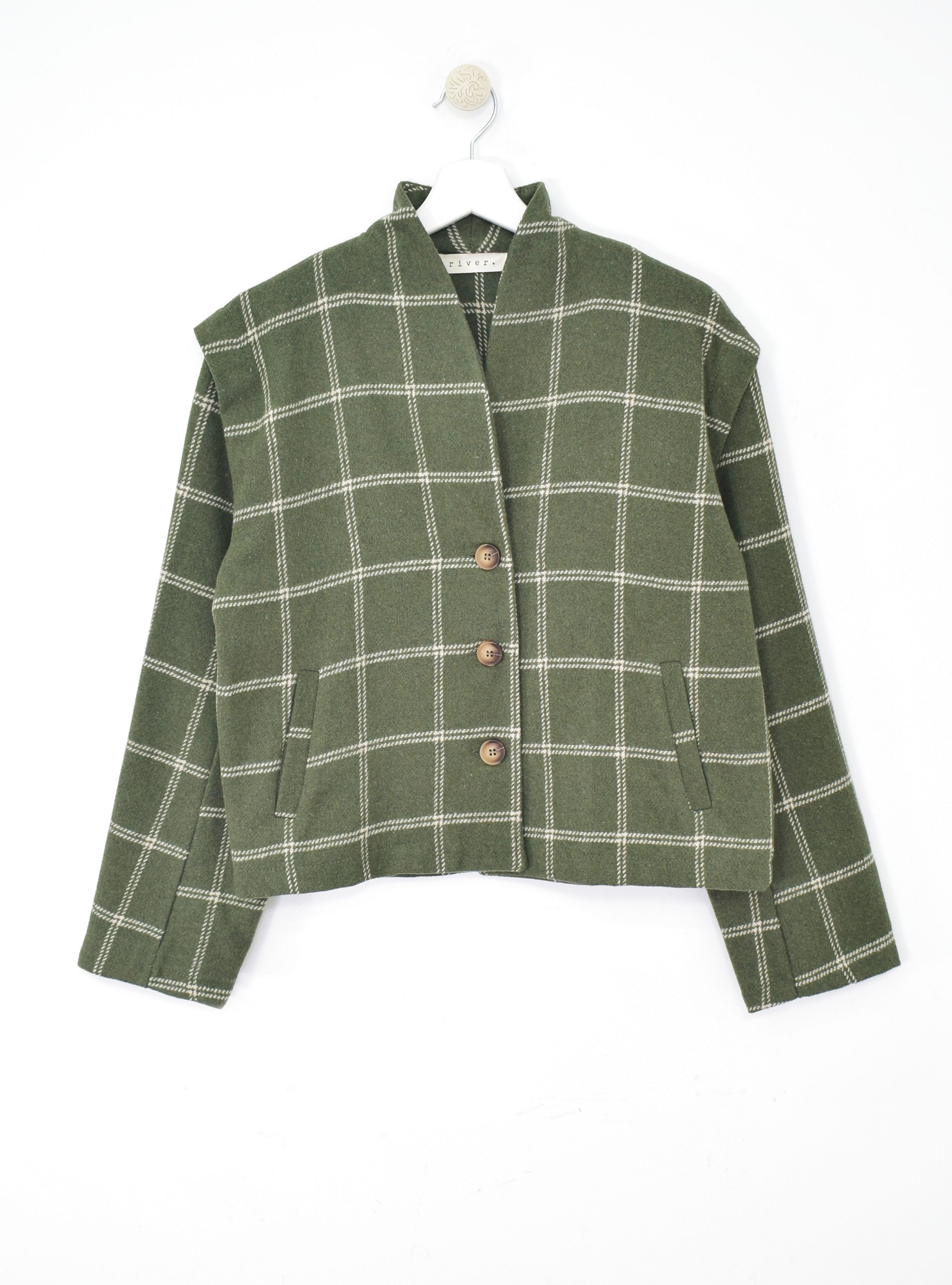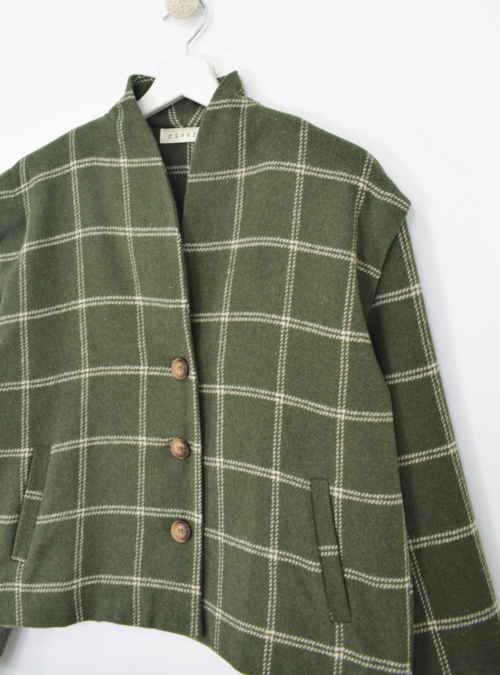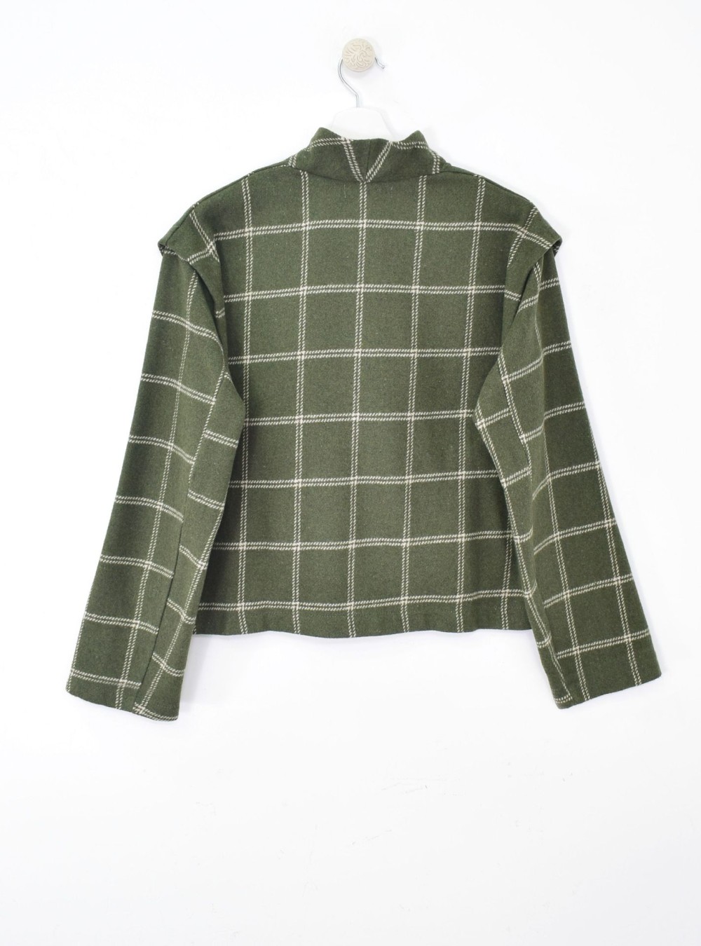 Chaqueta de corte clásico con estampado de cuadros. Cuello en uve. Dos bolsillos. Es una prenda que dará un toque de color a tus looks más neutros. El corte sienta genial y el color verde manzana es tendencia.