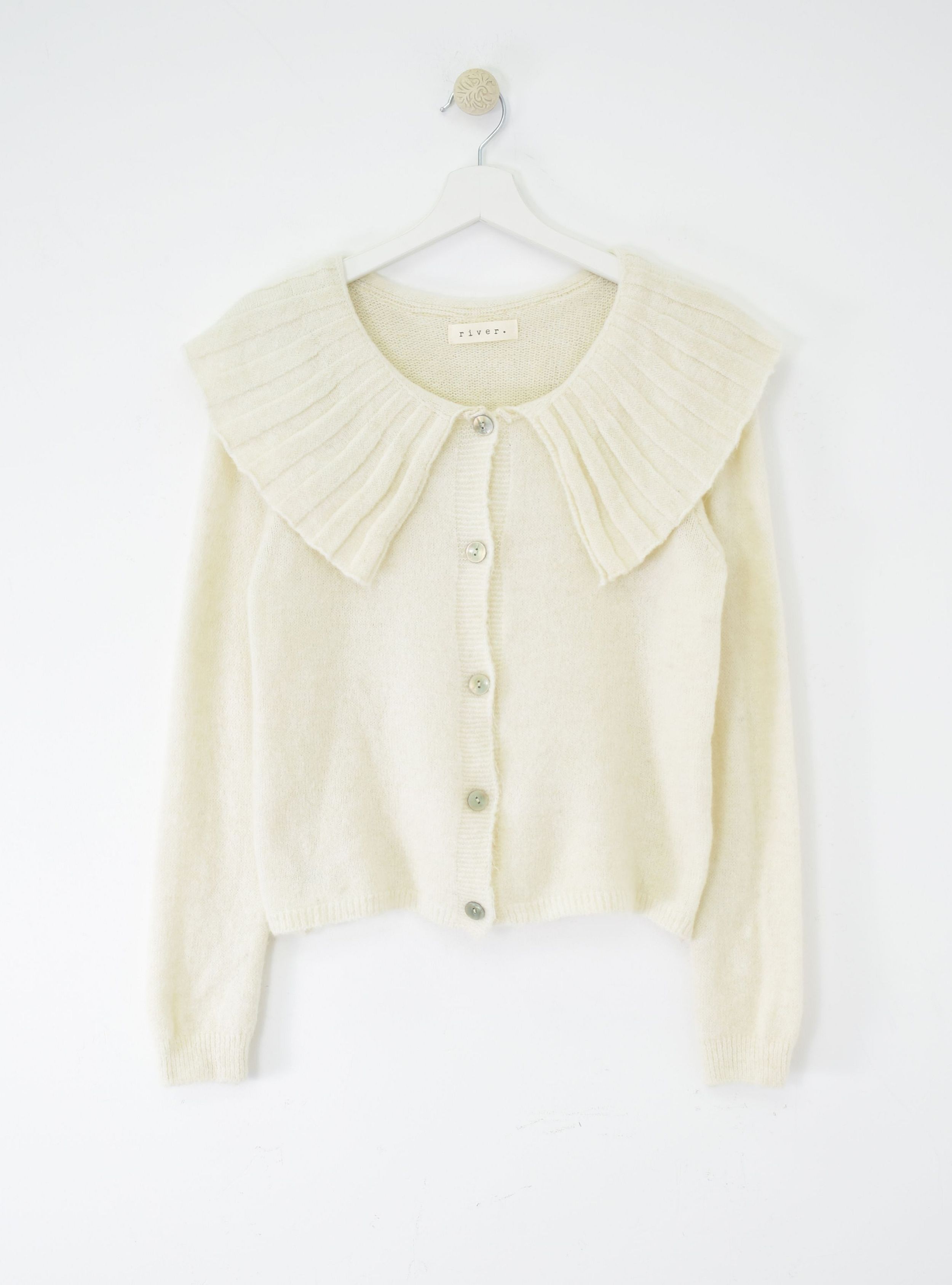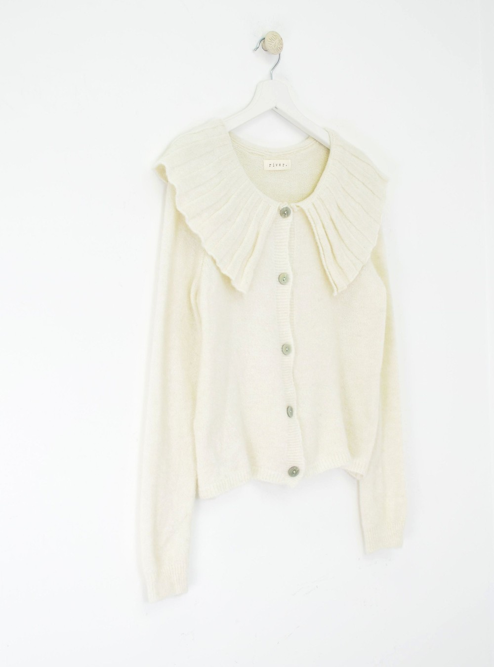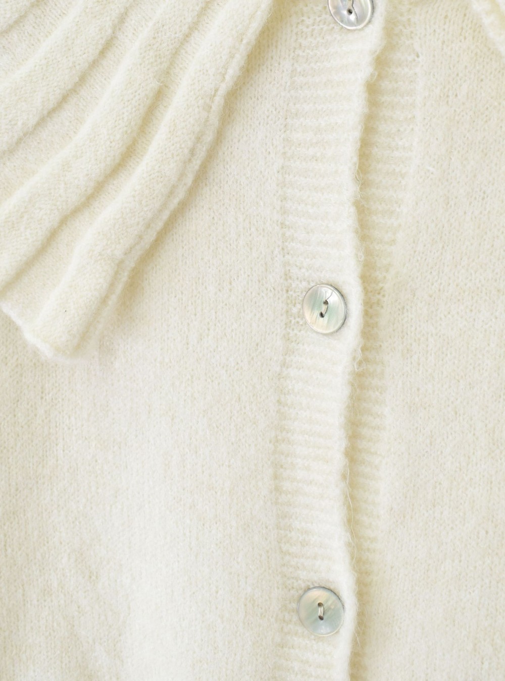 Chaqueta de punto de corte holgado con cuello de punto tipo bebe. Cierre por medio de botones de nácar. Tejido muy suave al tacto.