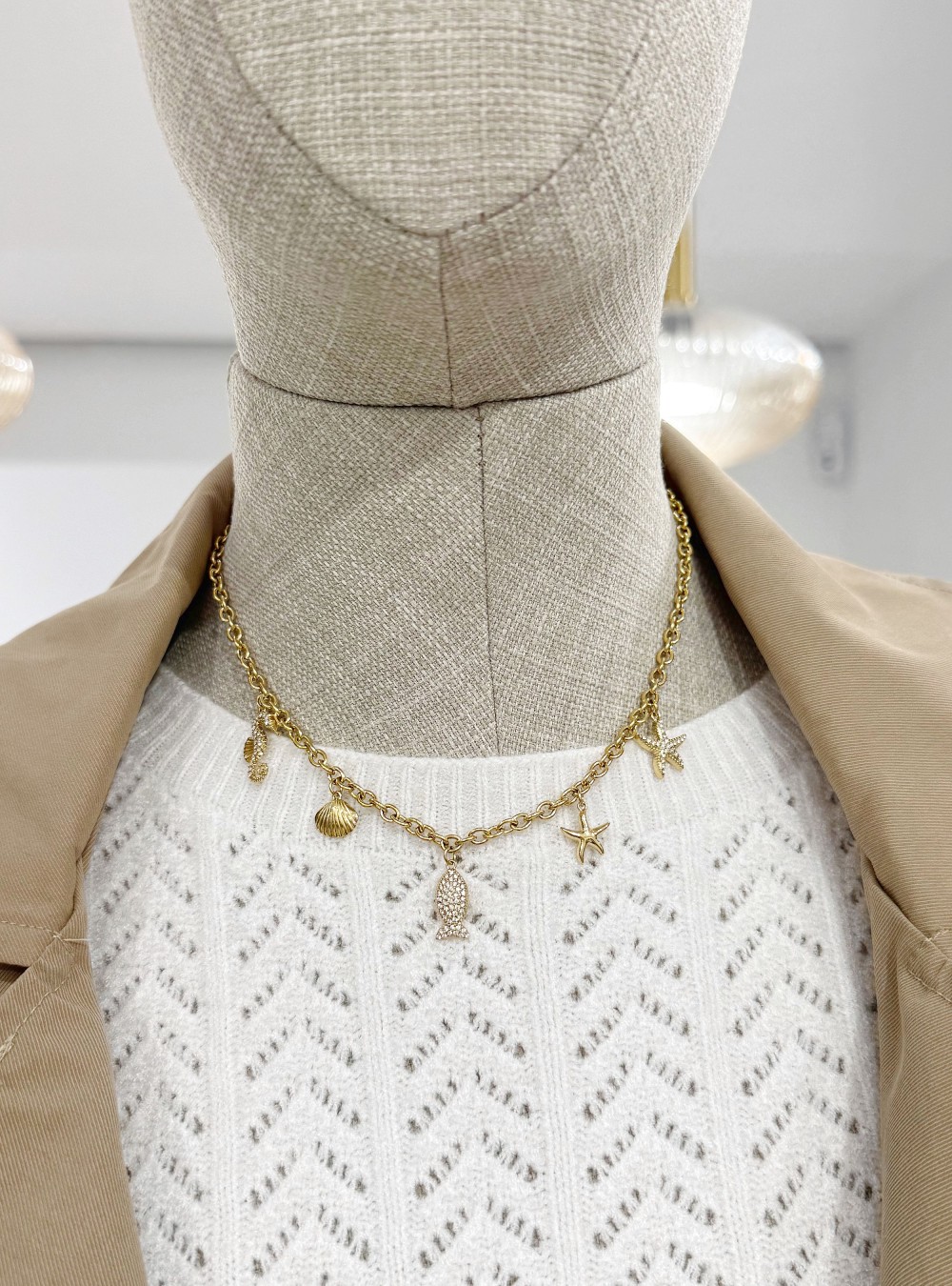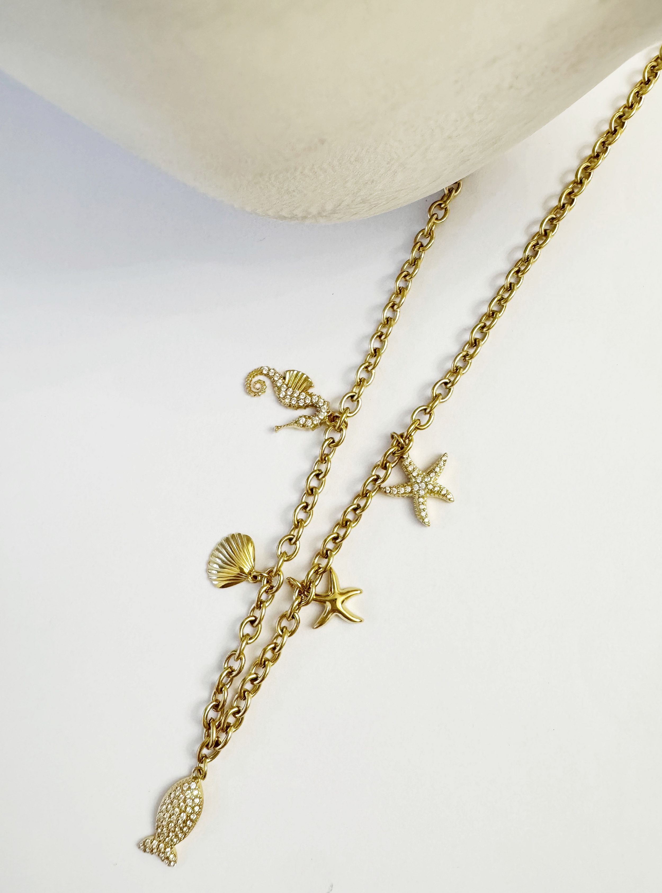 Collar con charms con motivos del mar con circonitas.