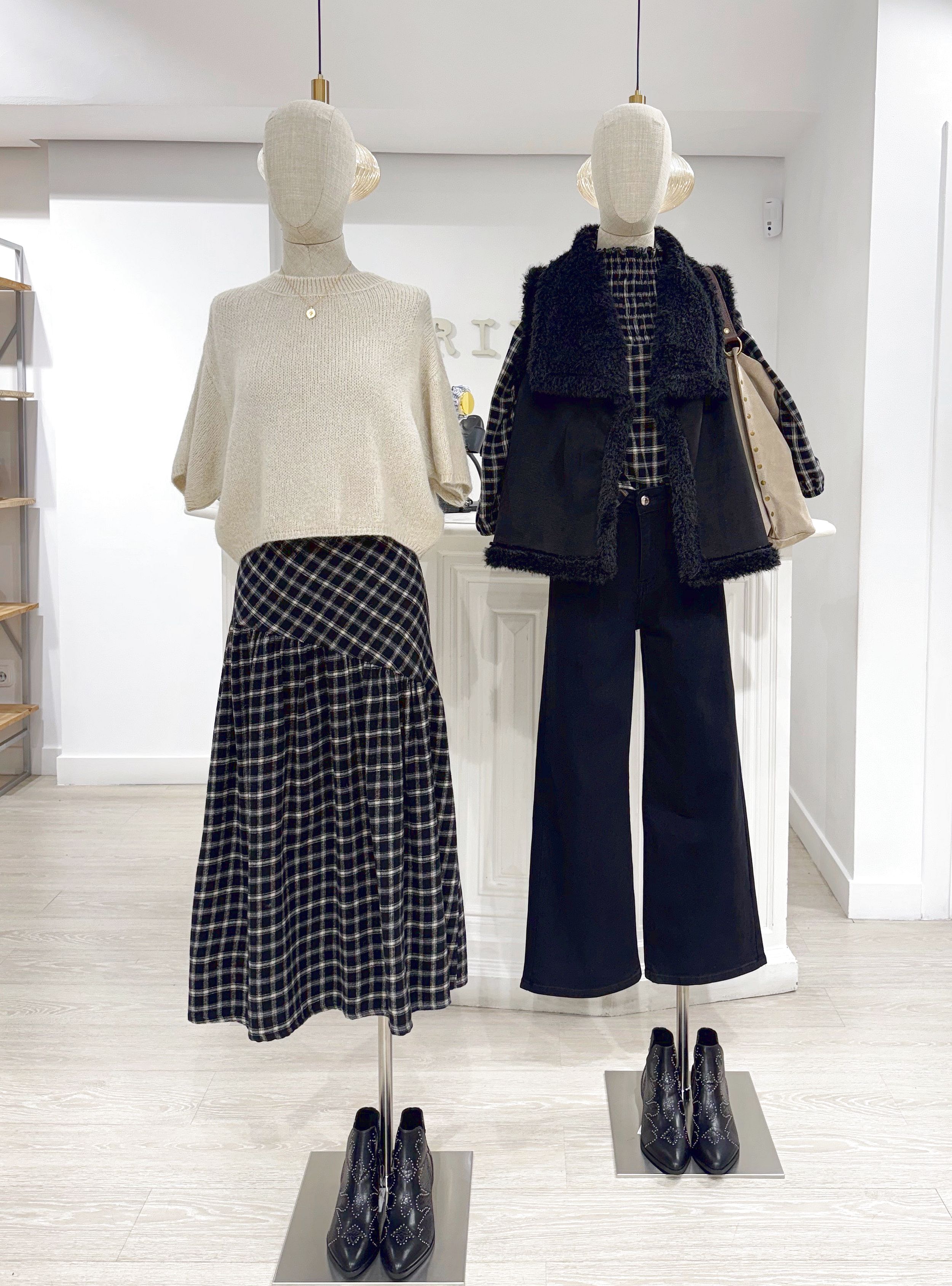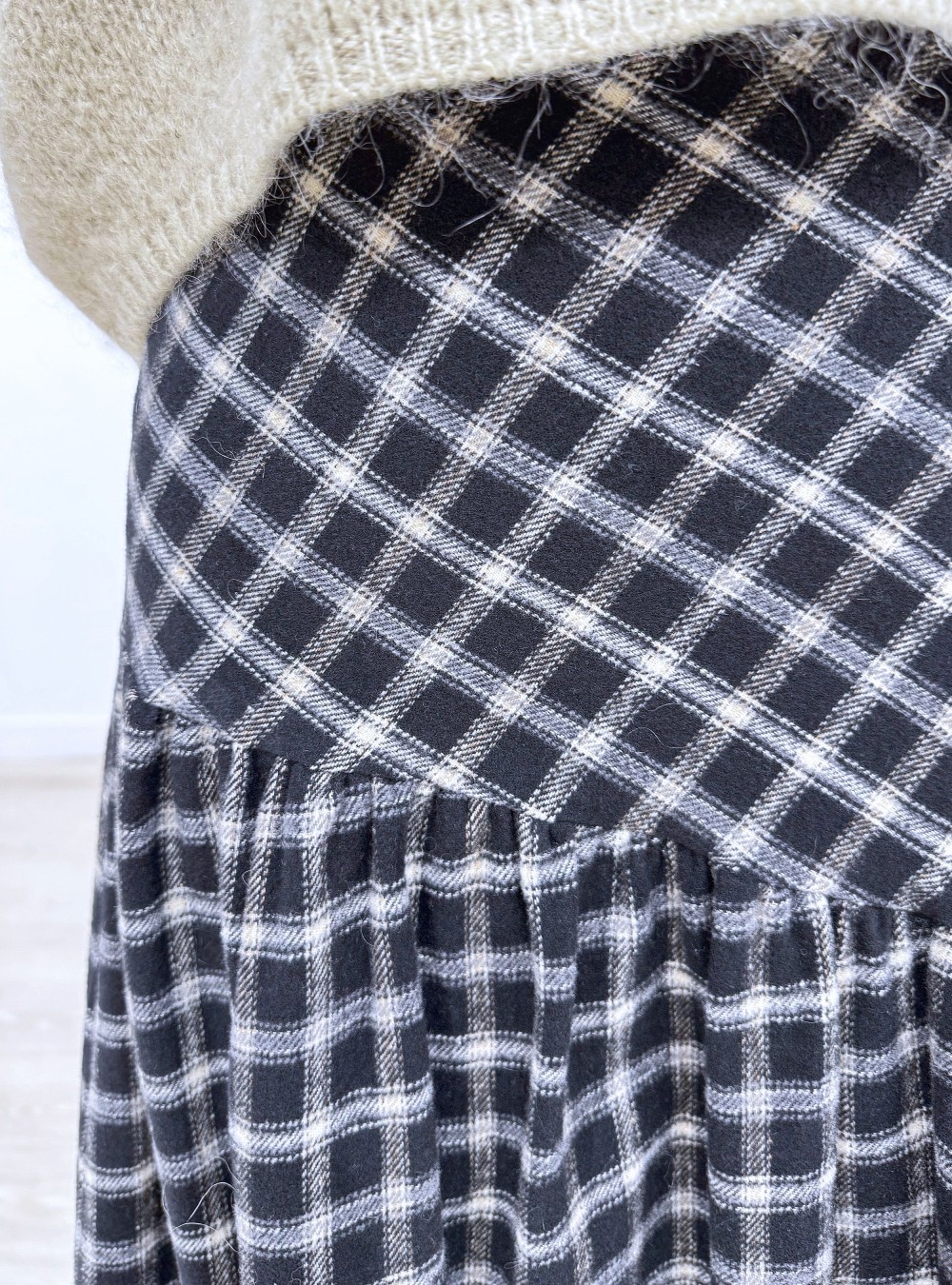 Falda larga con estampado de cuadros. Cintura elástica. Puedes mezclarla con la blusa a juego para un total look súper bonito y de tendencia.