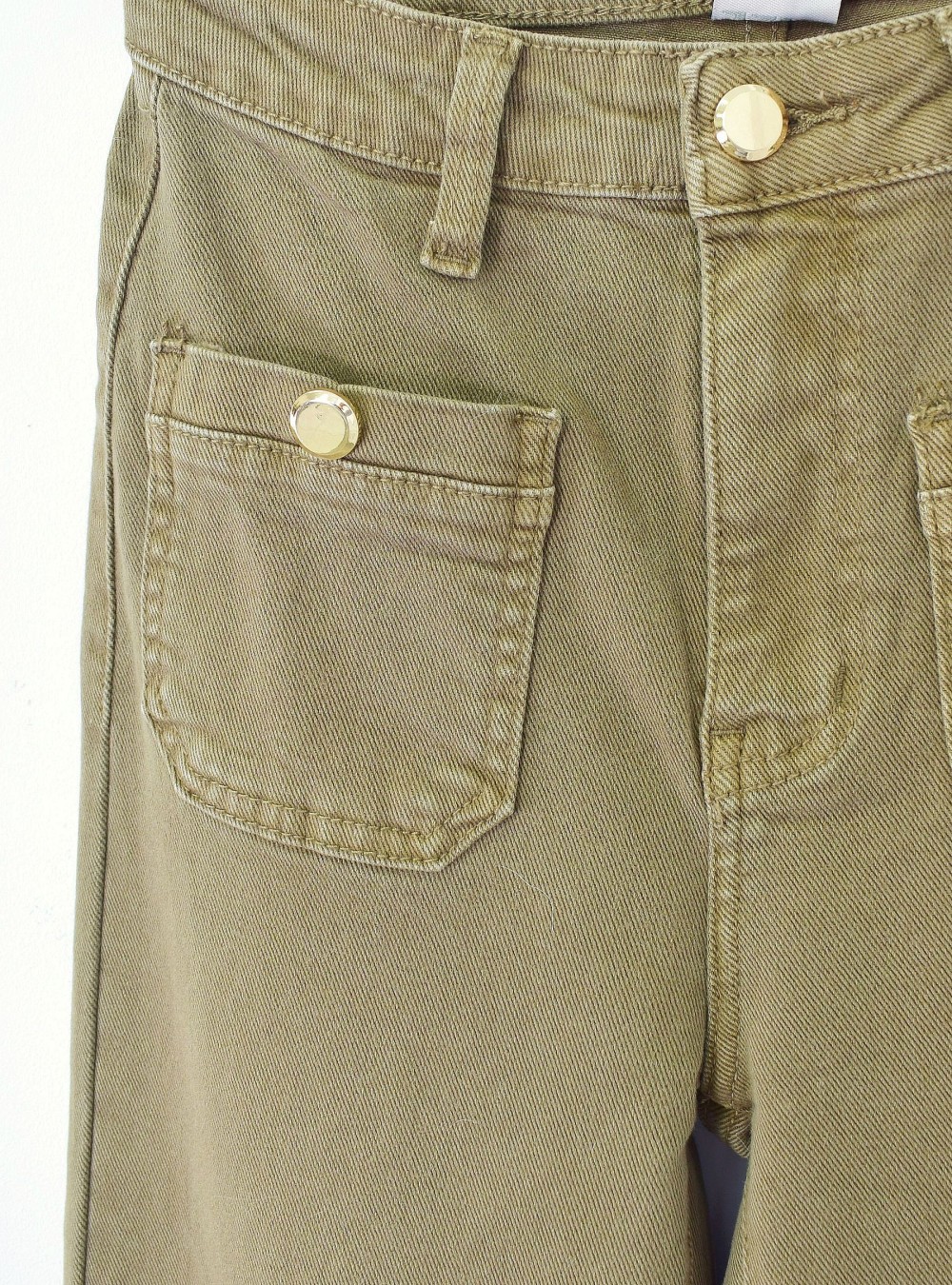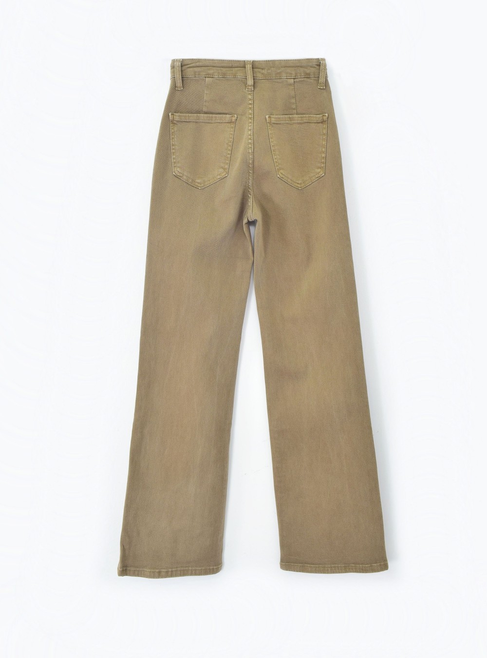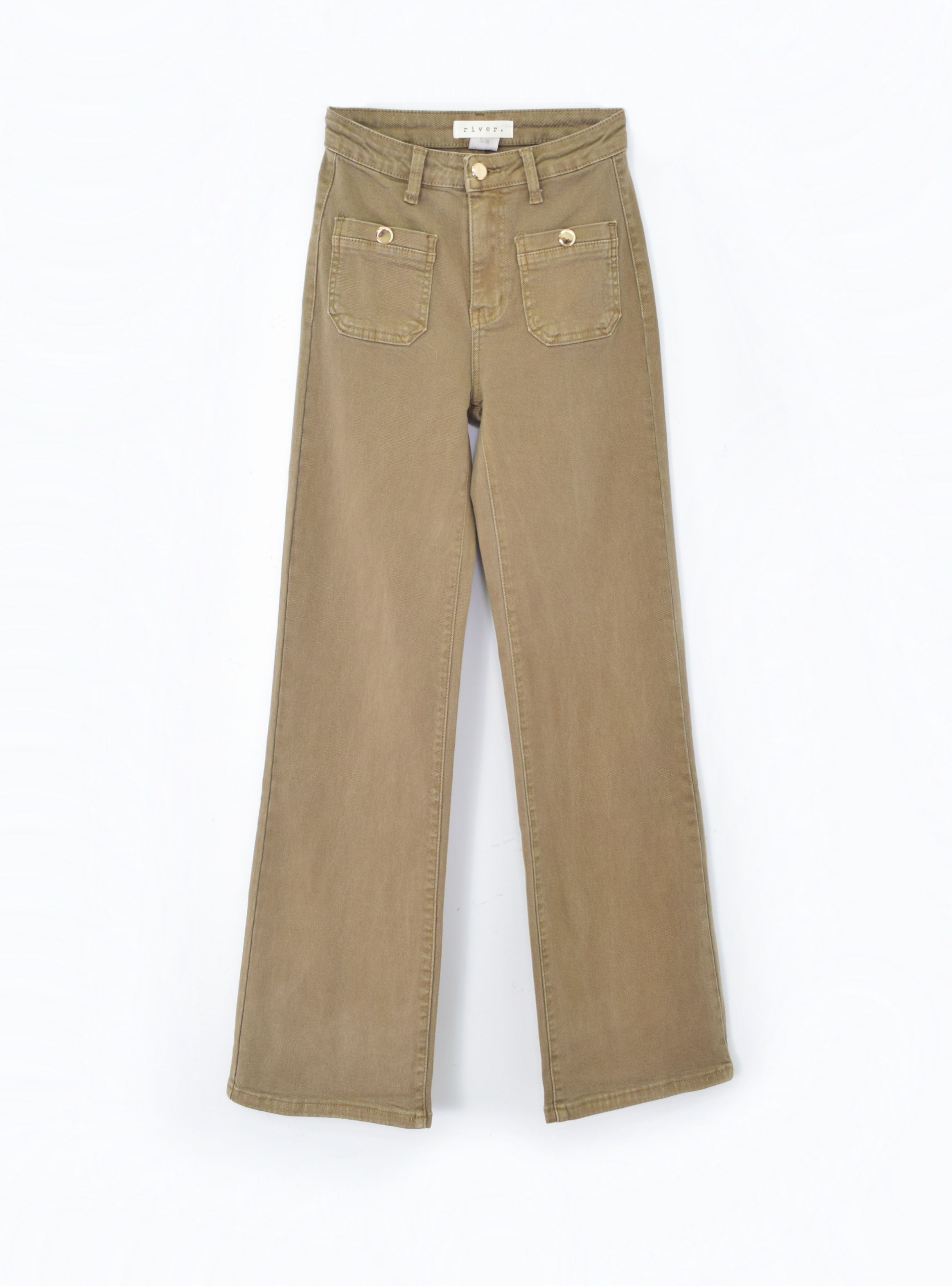 Jeans straight de tiro alto en tejido de algodón con bolsillos parche por delante y por detrás. Cierre mediante botón y cremallera. Tejido ligeramente elástico que hará que se adapte a tu cuerpo sin apretar nada. Perfecto para combinar con partes de arriba en colores claros, en contraste y con estampado.
