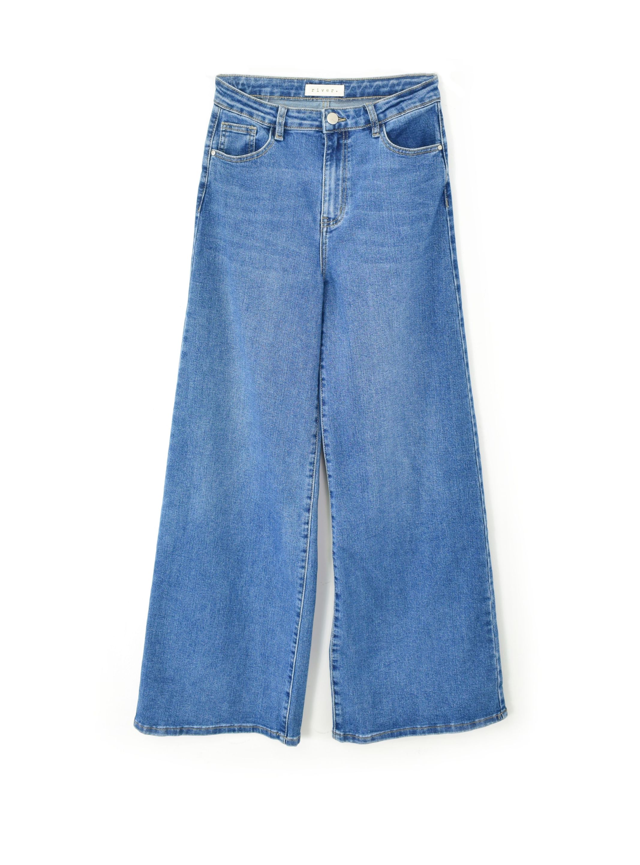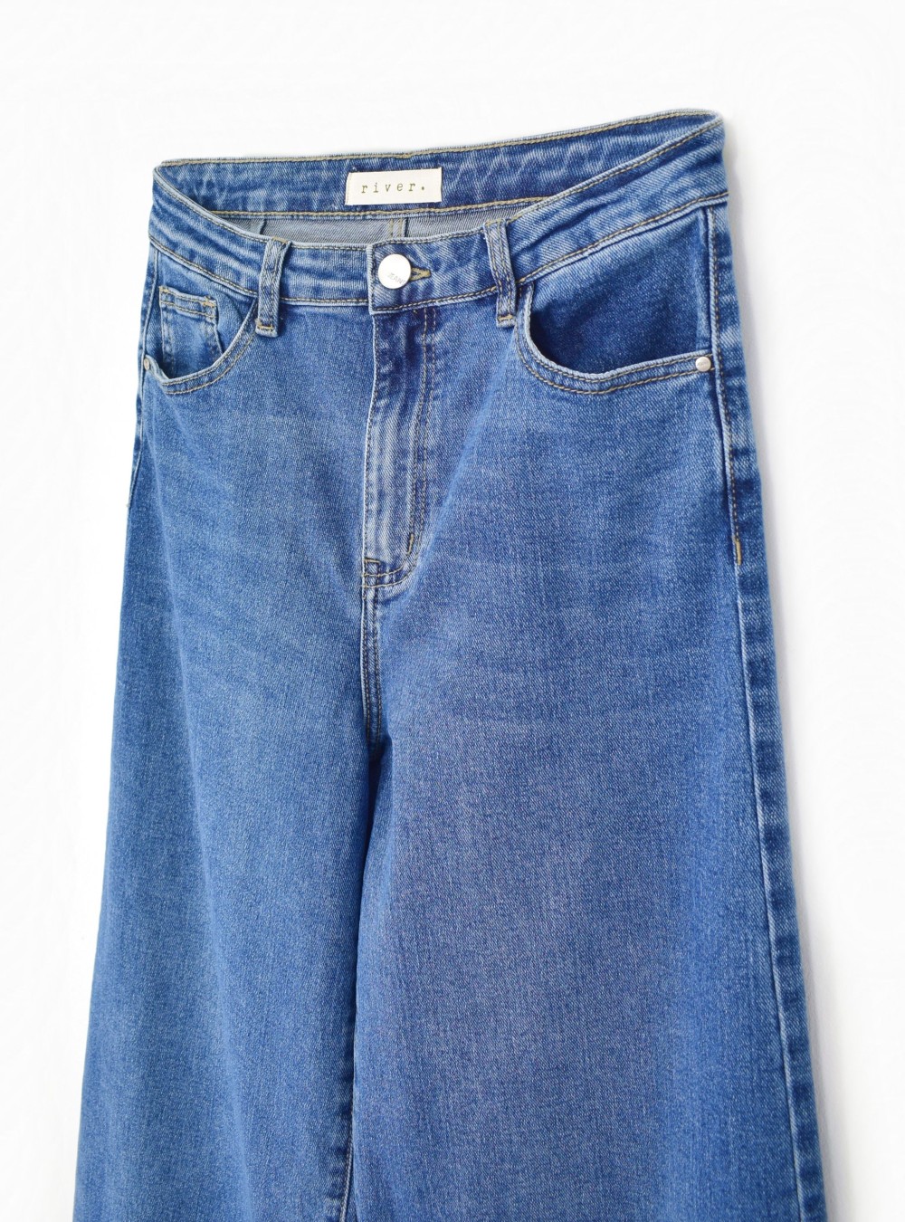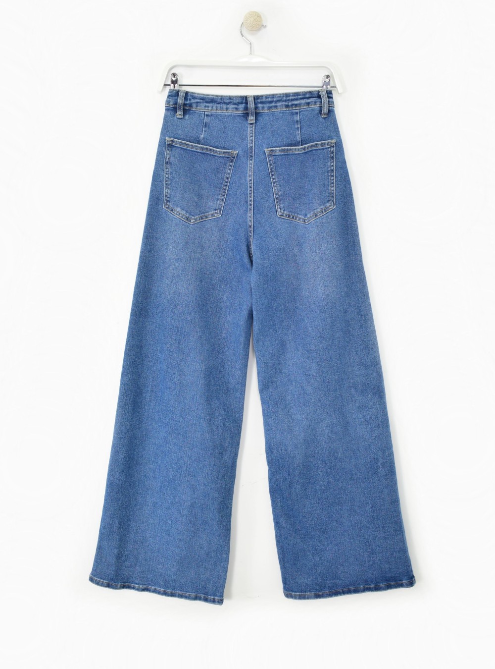Jeans wide leg de tiro alto y tejido en algodón ligeramente elástico. Tiene dos bolsillos por delante y dos por detrás. Lleva pinzas en la zona de la espalda que harán que este jeans te quede espectacular. Te recomendamos combinarlos con partes de arriba cortas y de cortes rectos para looks actuales y estilosos.
