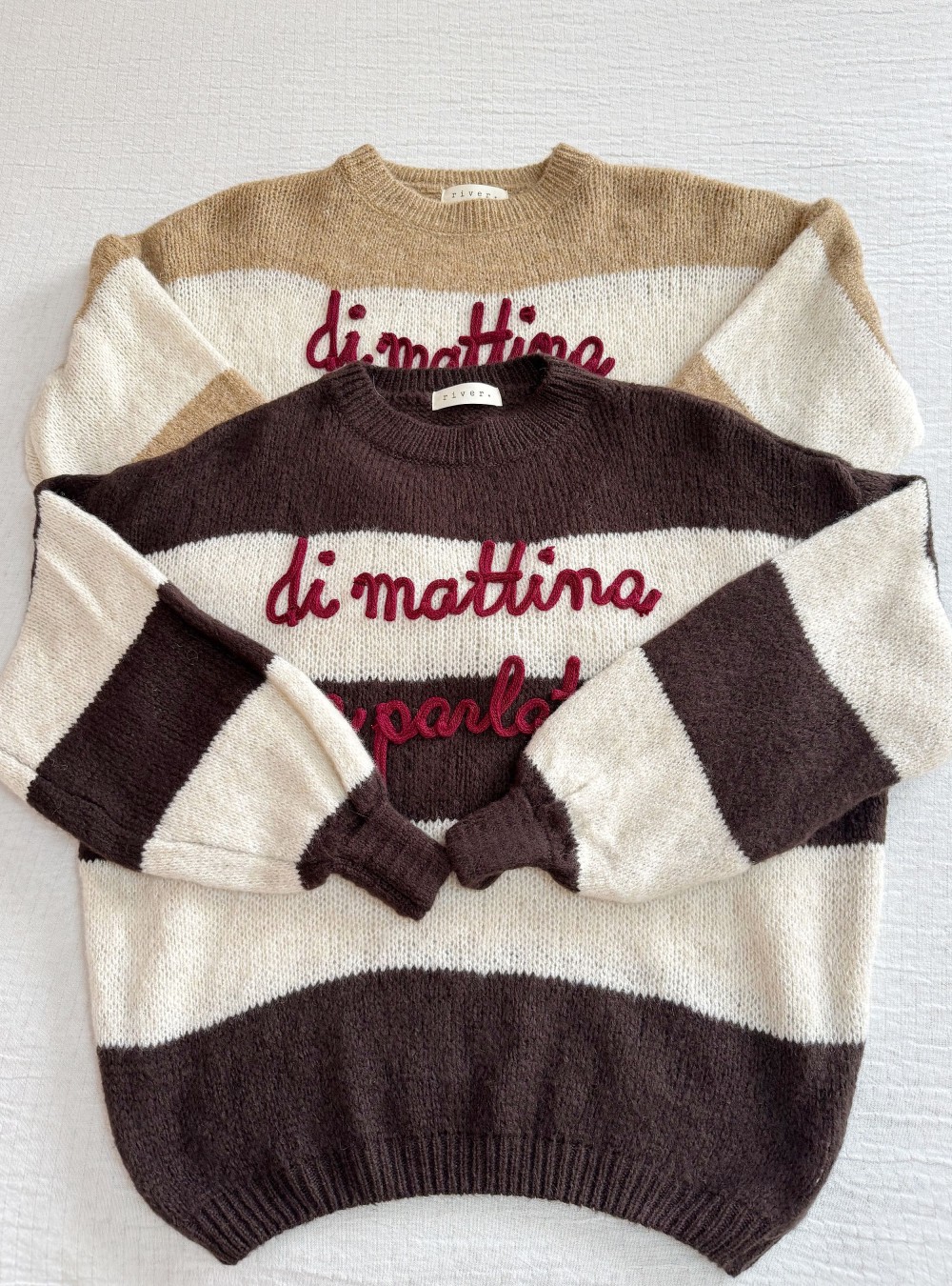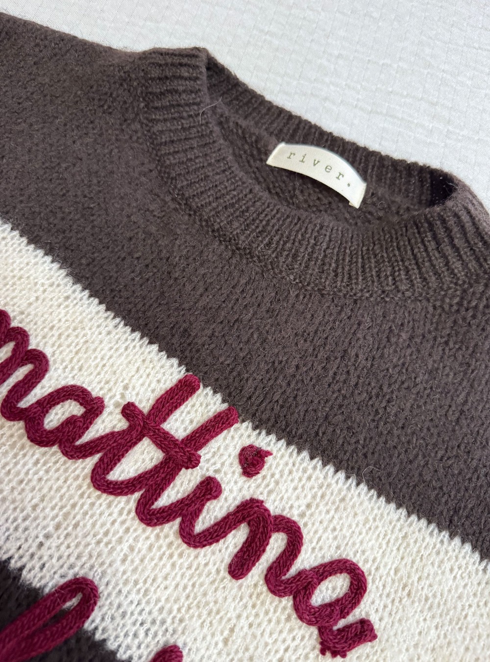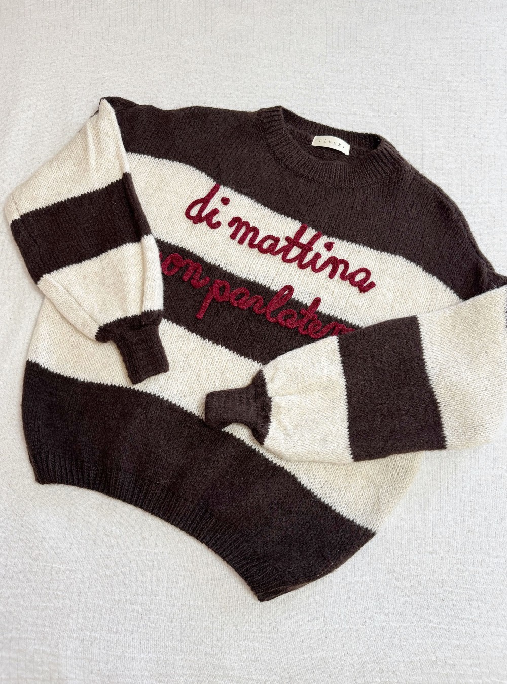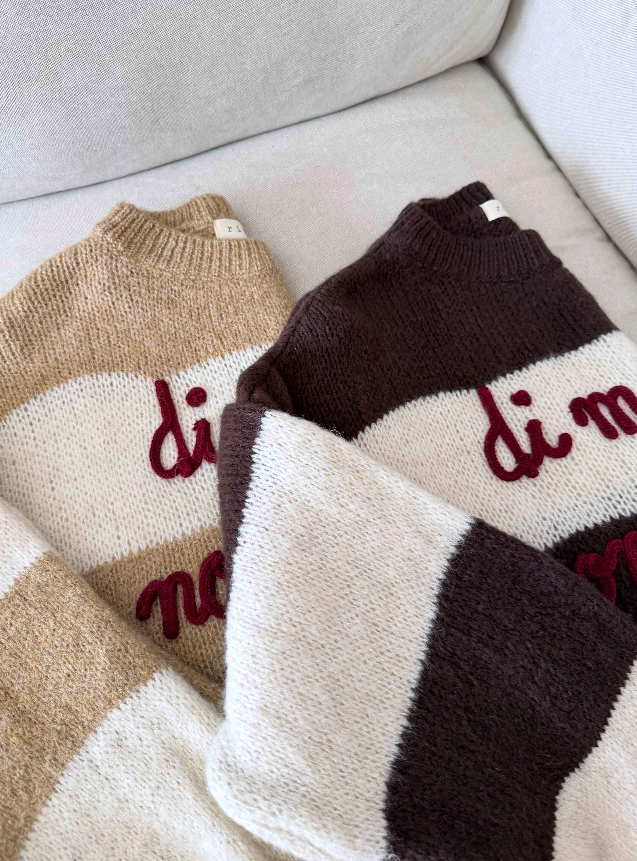 Jersey de rayas con mensaje. Cuello redondo. Bajo abullonado. Tejido muy suave al tacto.Corte holgado.