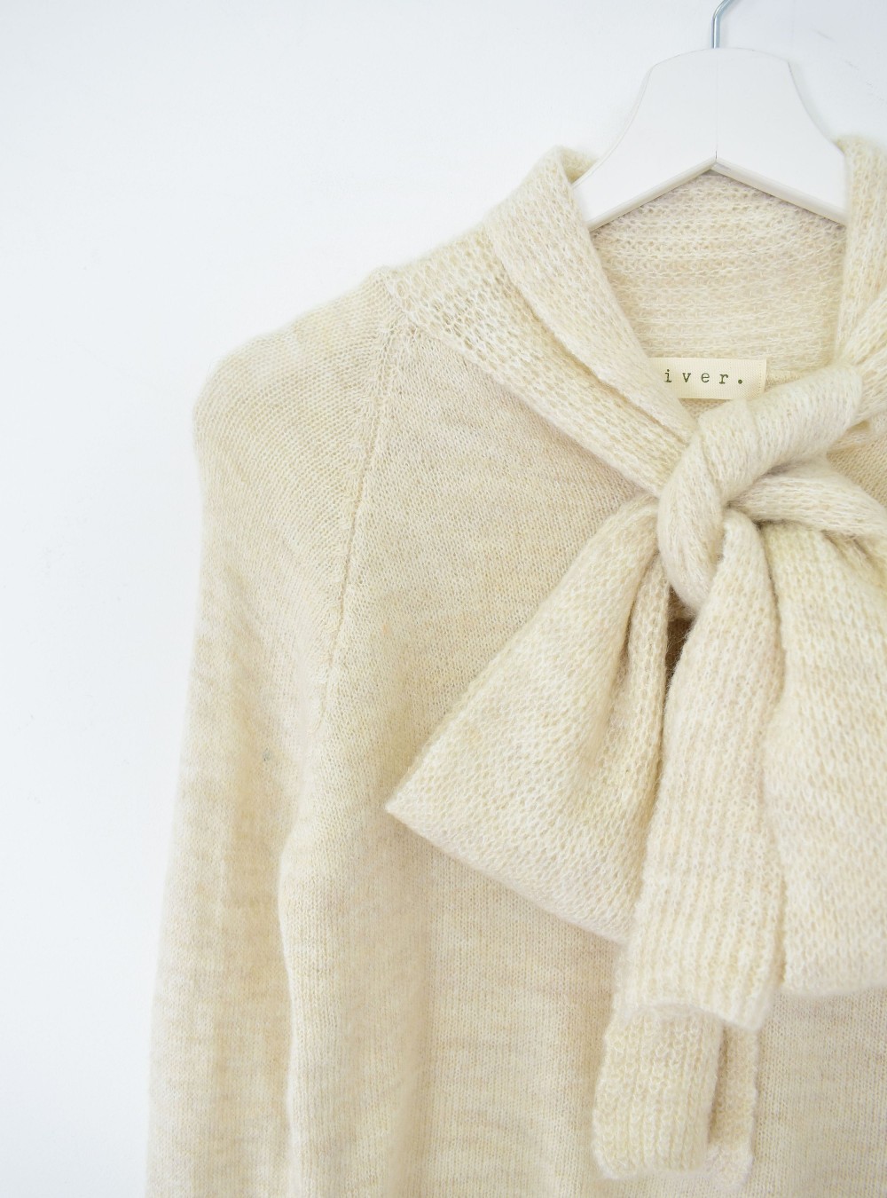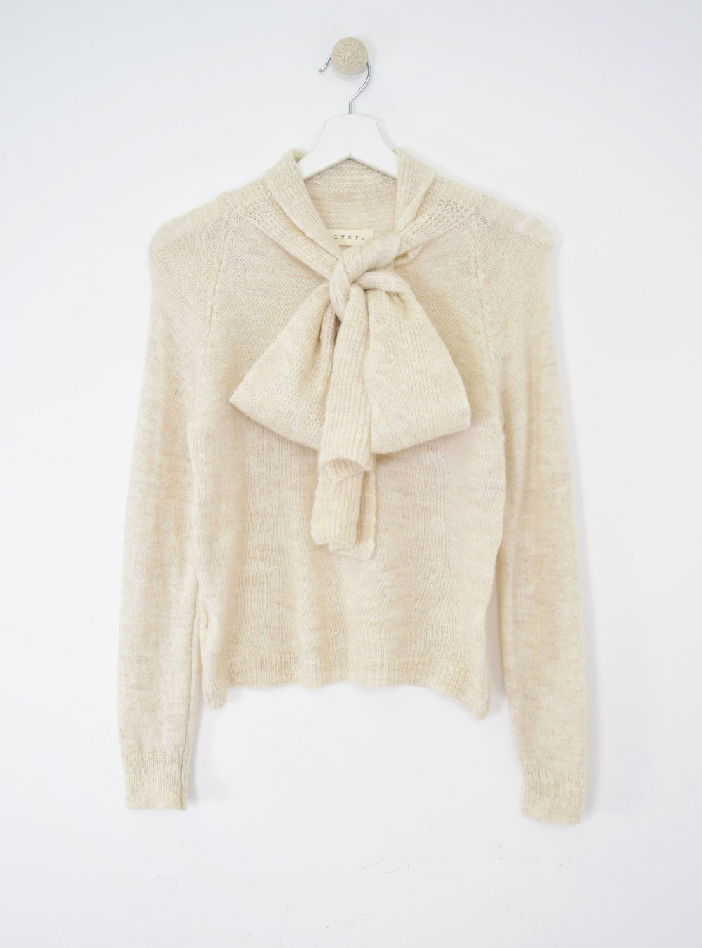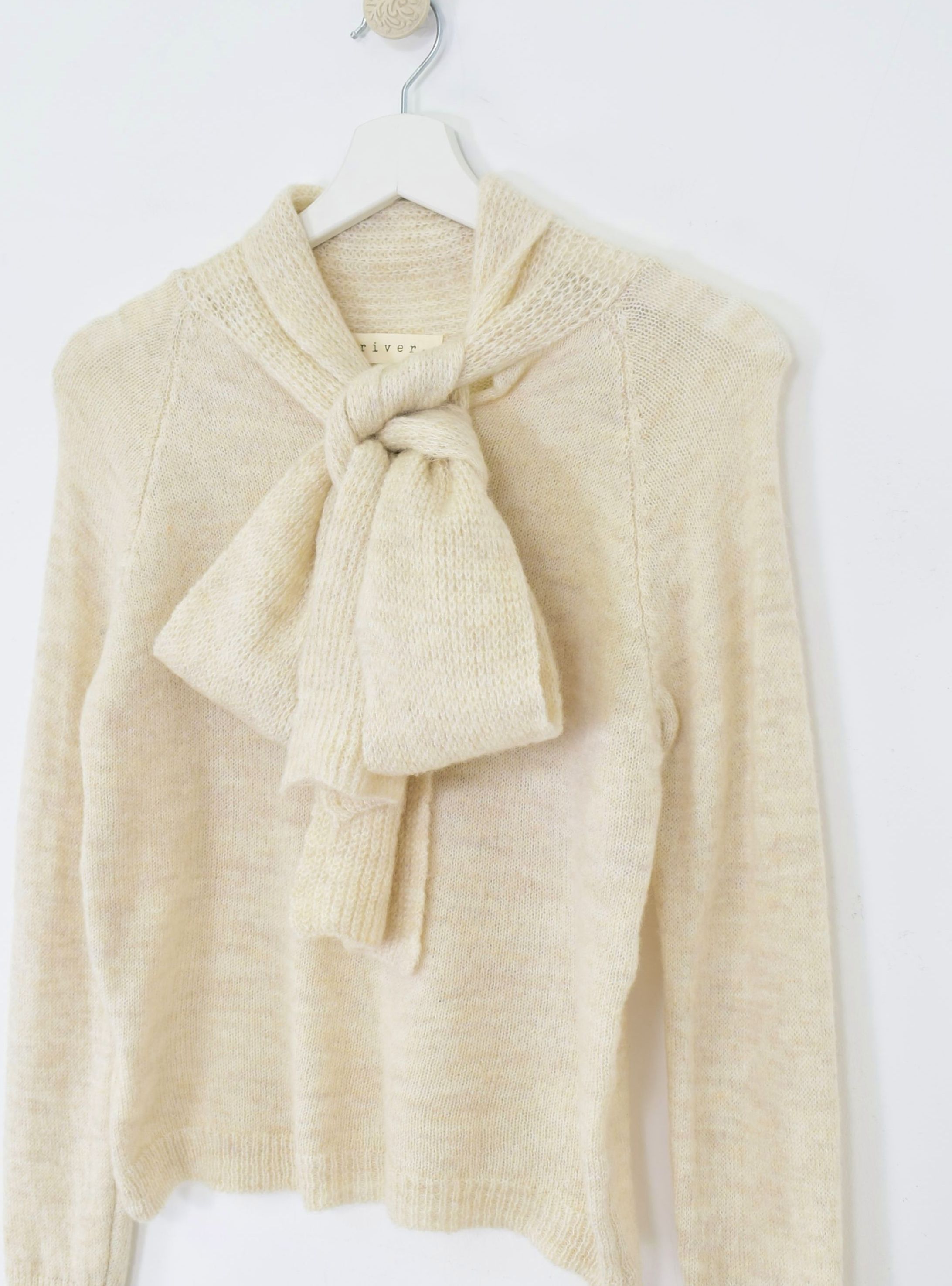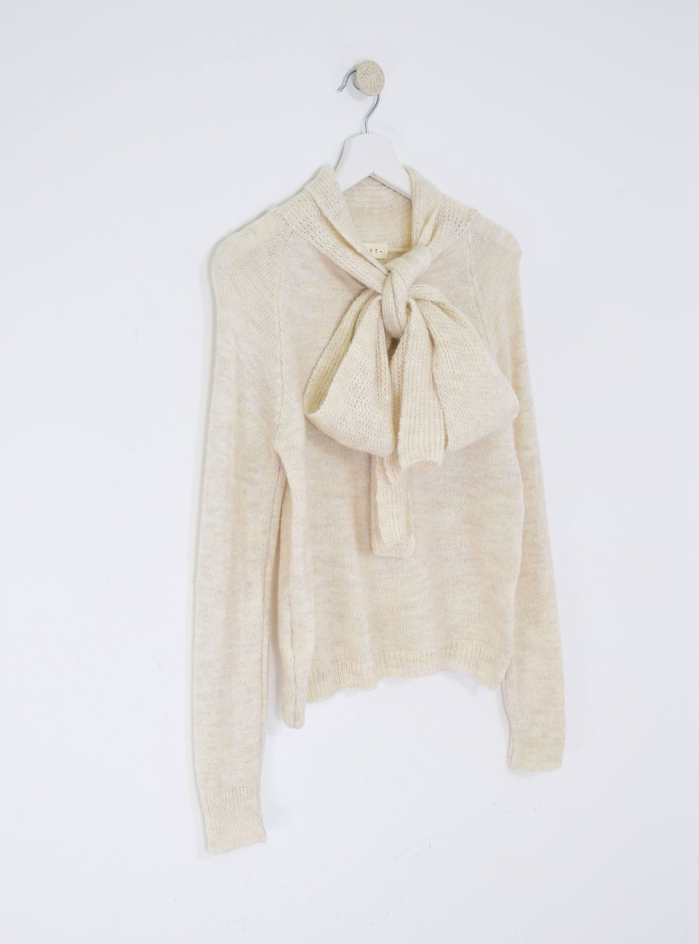 Jersey de corte recto en punto con lazo de punto perforado unido al jersey en la parte del cuello. Tejido muy suave con un ligero porcentaje de lana. Te recomendamos mezclas con jeans, pantalones y faldas en gamas de color claritas para no hacer un contraste muy marcado, es la prenda que ocupará la parte principal del look.
