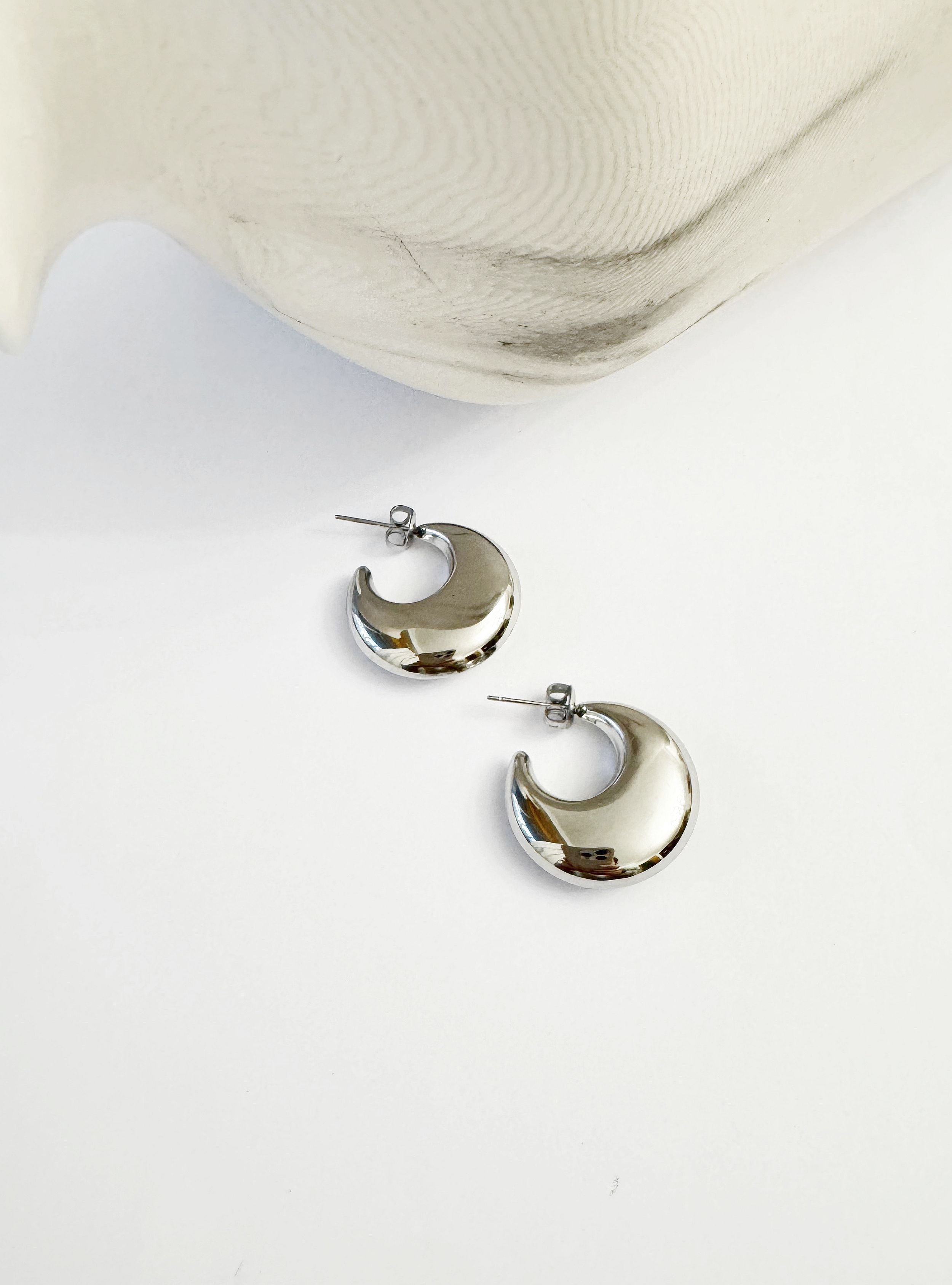Pendientes de tamaño medio con forma de media luna.