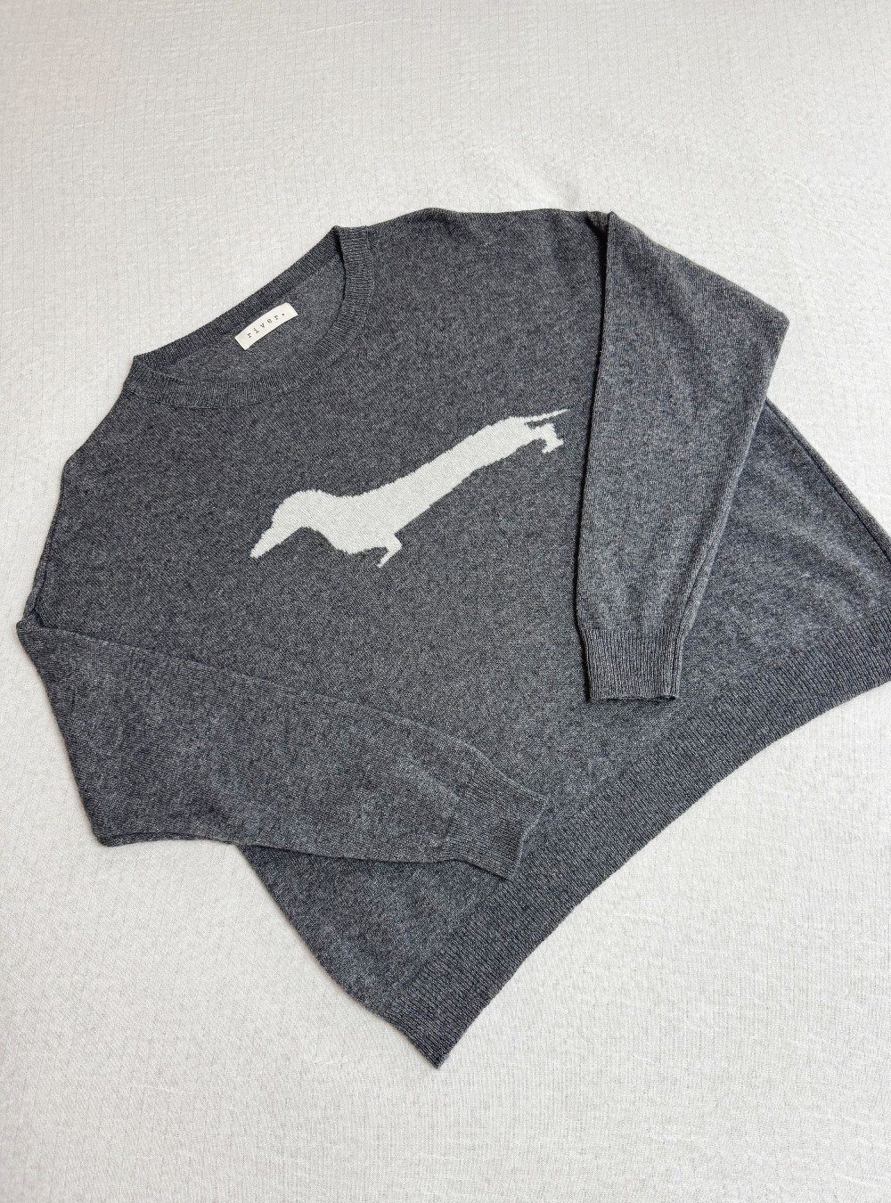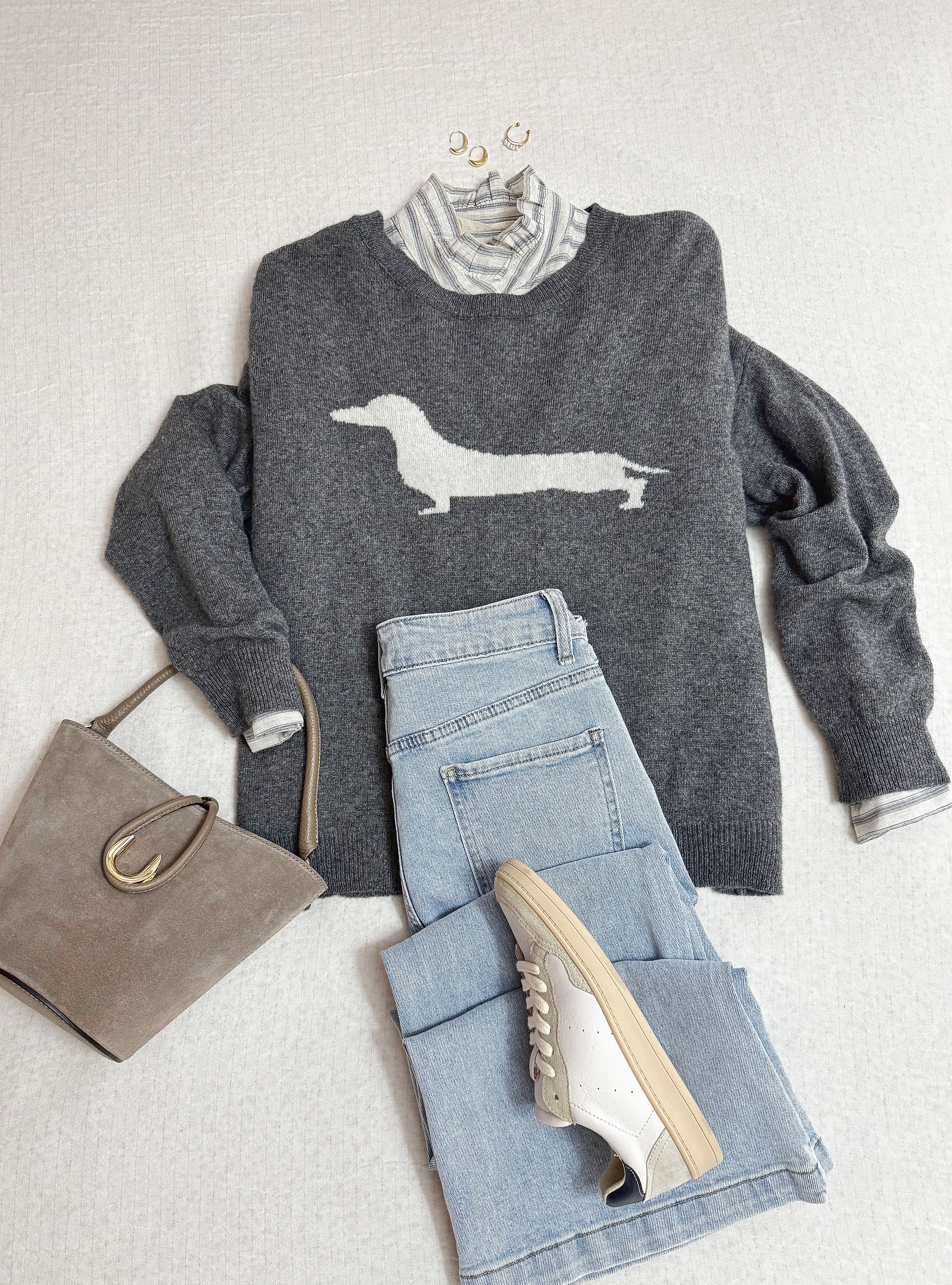 Jersey de punto corte amplio con un teckel en contraste en la parte de delante. Cuello redondo. Tejido de lana y casmire muy suave al tacto. Puedes mezclarlo con una blusa de rayas y un jeans para un look de día original y con mucho rollo.