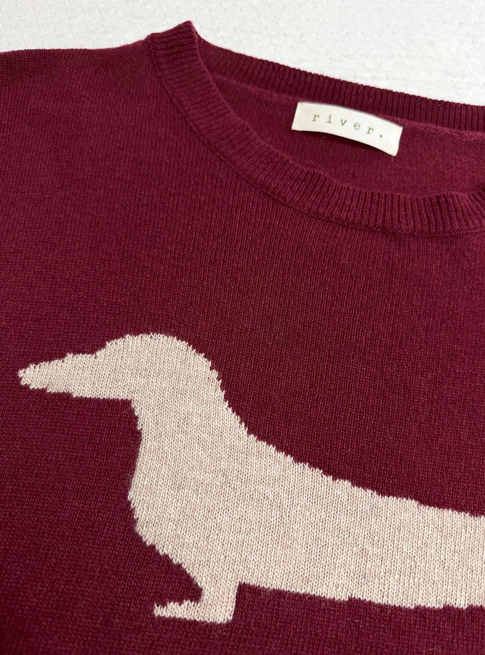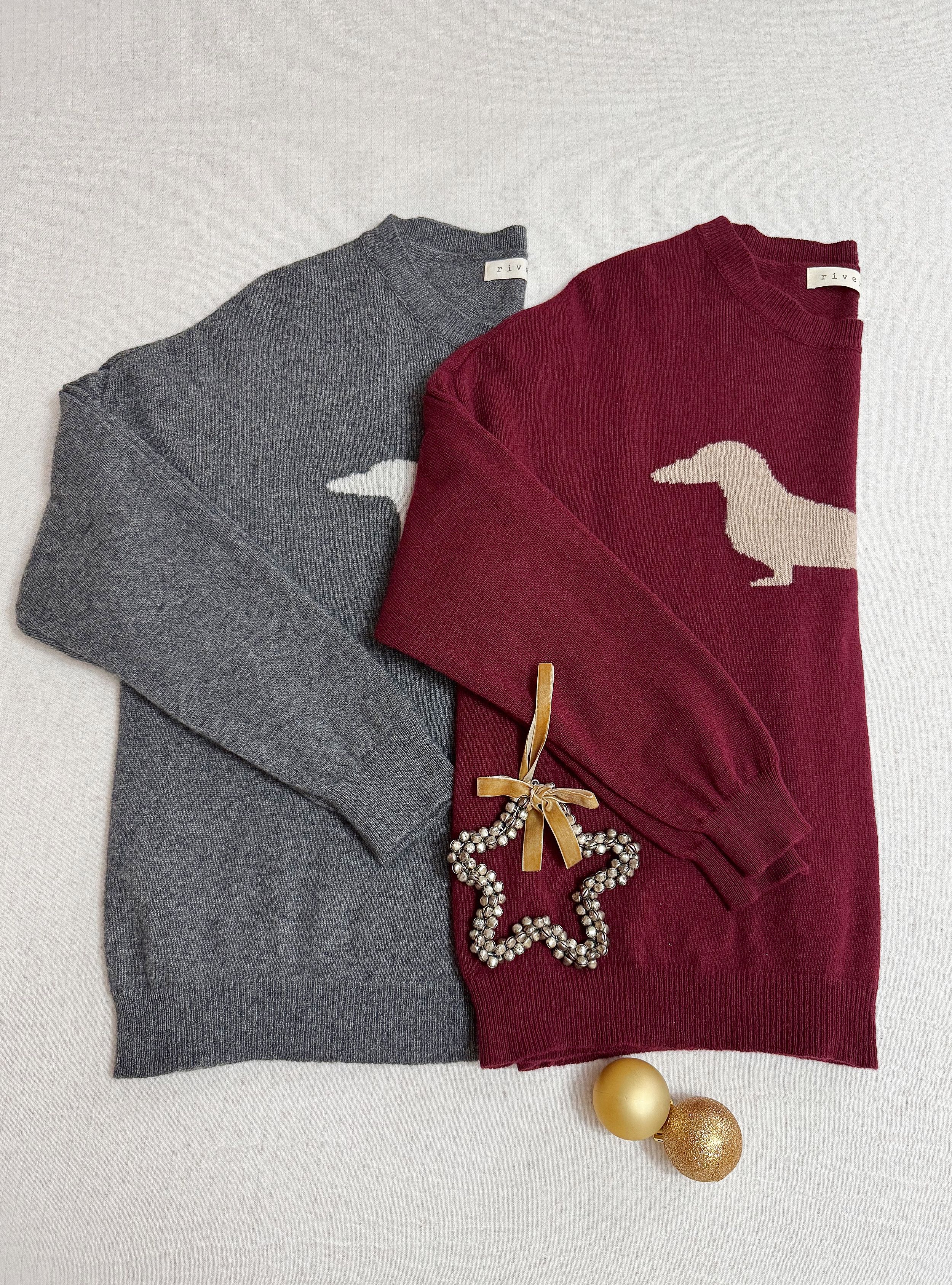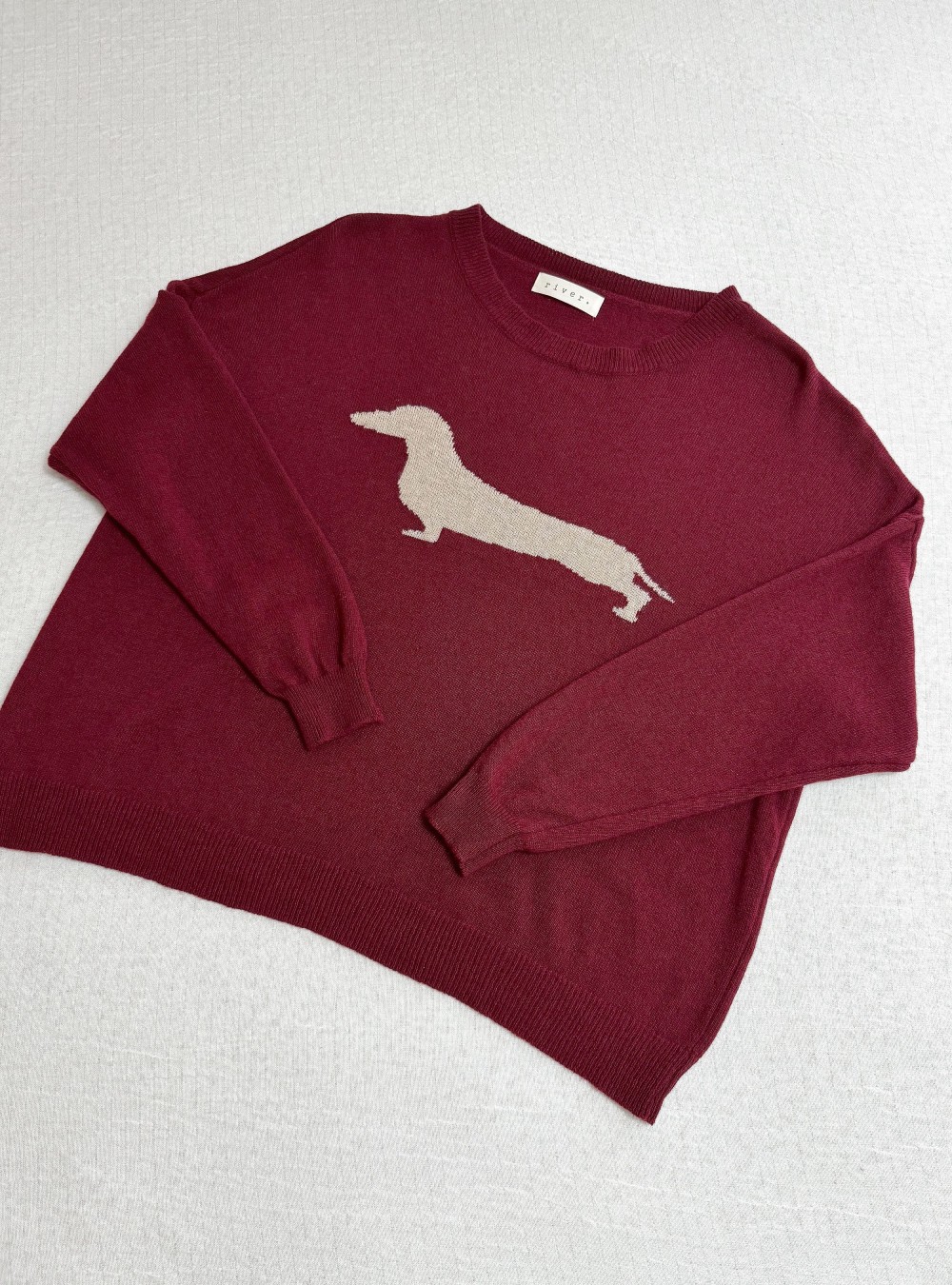 Jersey de punto corte amplio con un teckel en contraste en la parte de delante. Cuello redondo. Tejido de lana y casmire muy suave al tacto. Puedes mezclarlo con una blusa de rayas y un jeans para un look de día original y con mucho rollo.