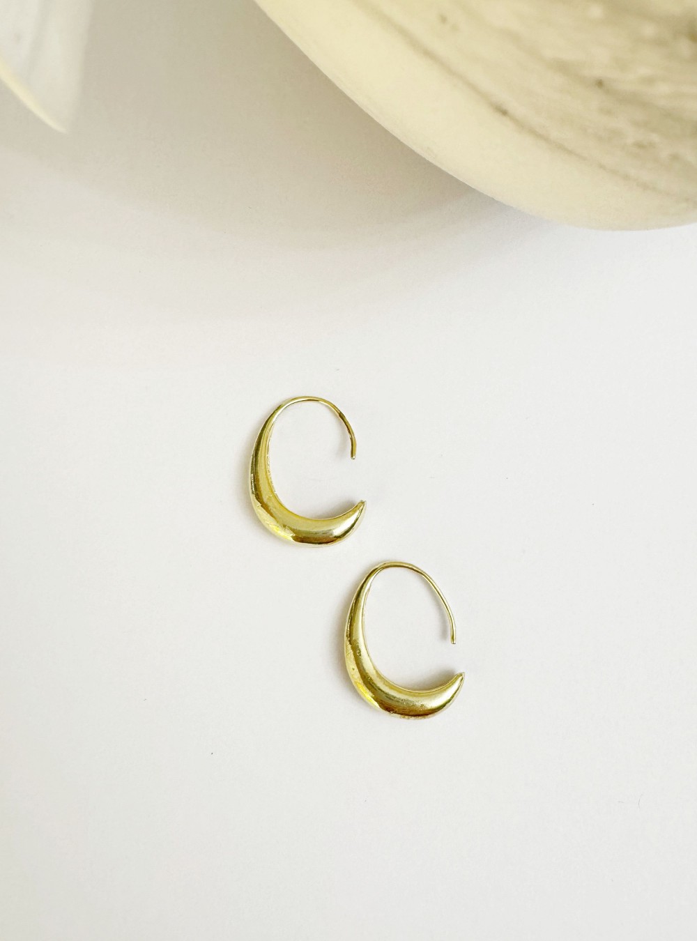 Pendientes de aro irregular abiertos en la parte de atrás de la colección de Bold & Hill.