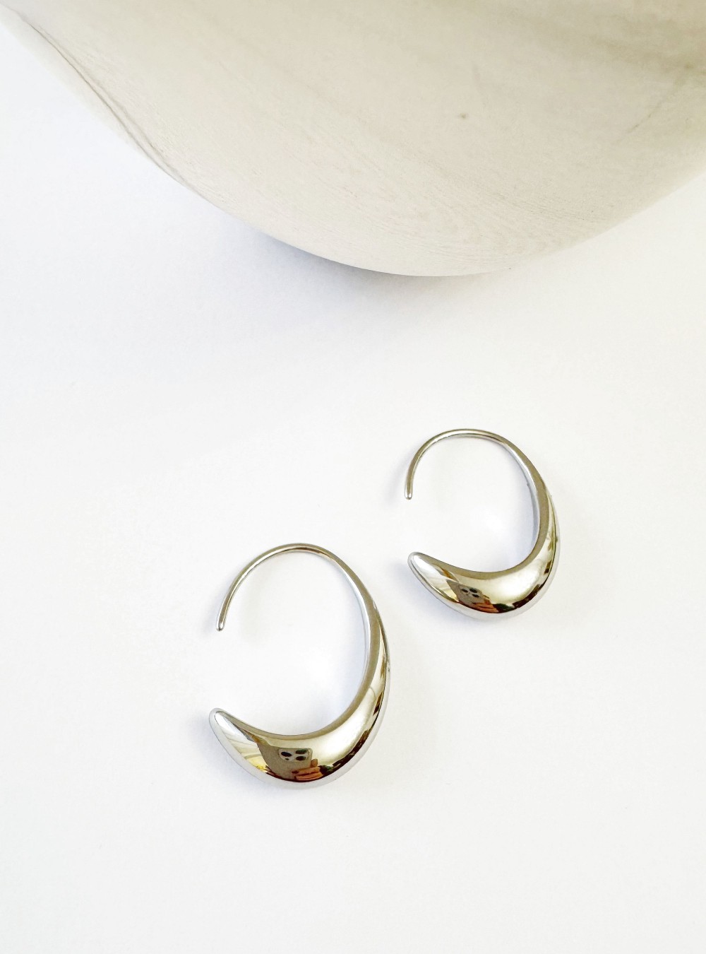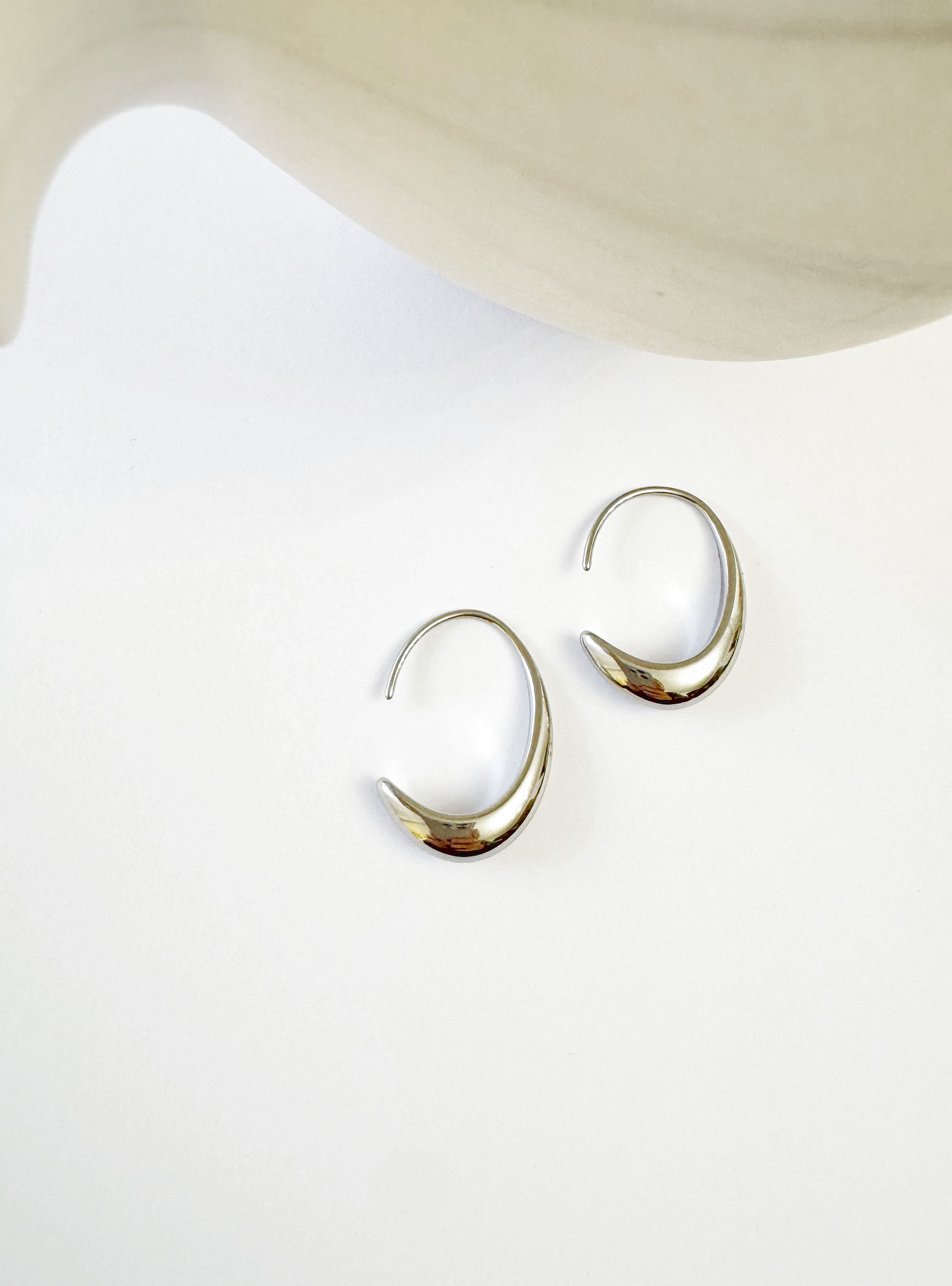 Pendientes de aro irregular abiertos en la parte de atrás de la colección de Bold & Hill.