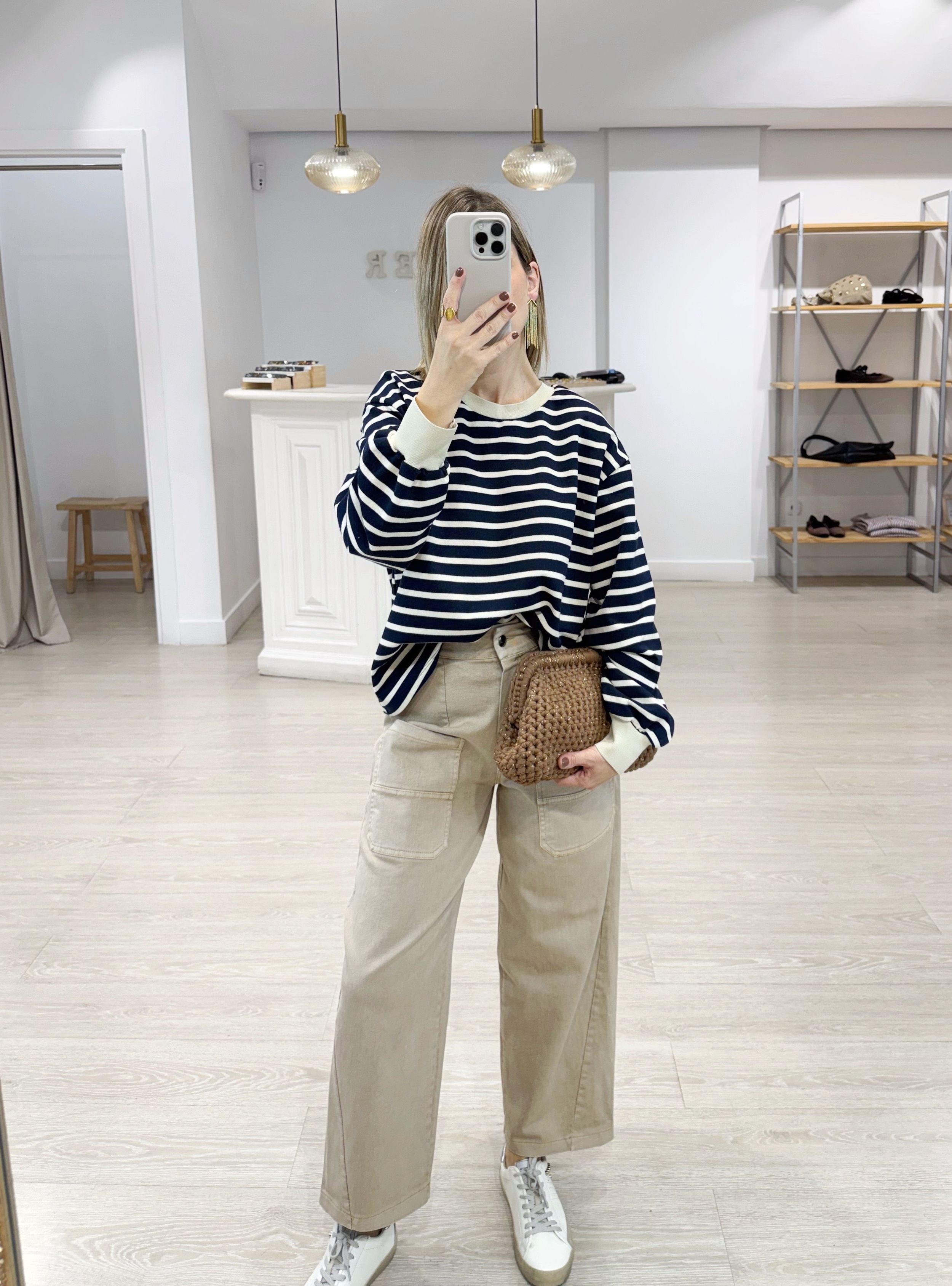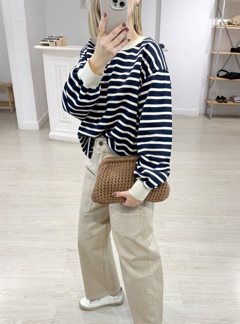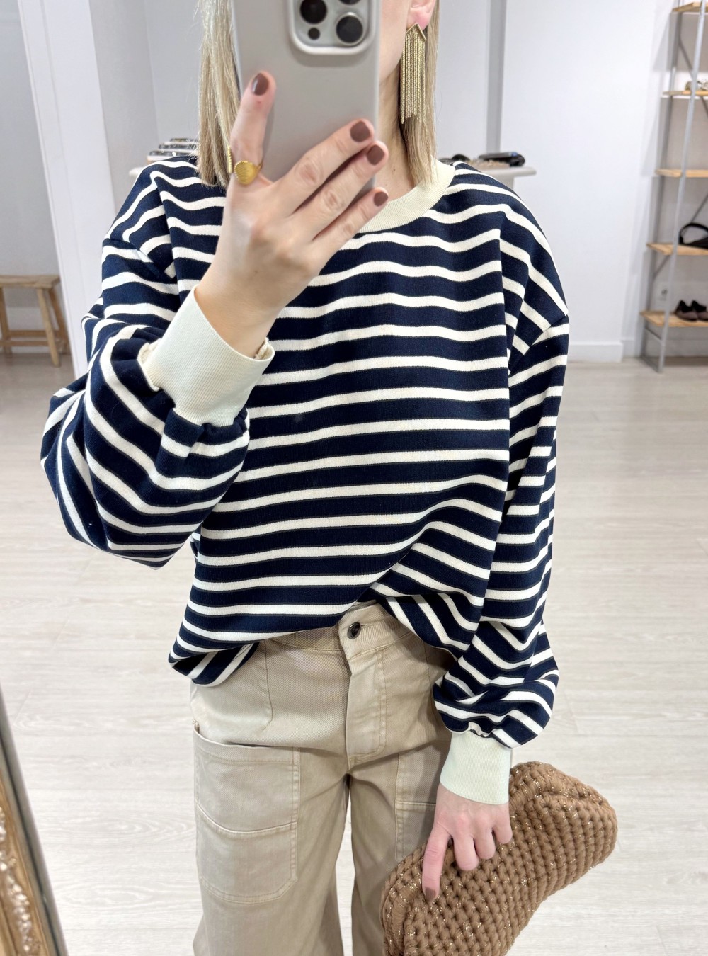 Sudadera de corte amplio en tejido de algodón. Cuello redondo. Es una prenda atemporal muy fácil de combinar.