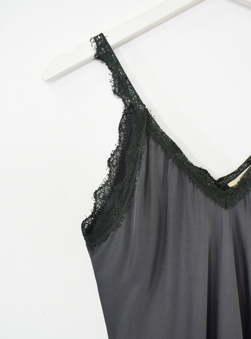 Top de tirante ancho con seda en el tejido y puntilla en los bordes. Escote en pico por delante y por detrás. Perfecto para combinaciones con chaquetas, blazers…abiertos.