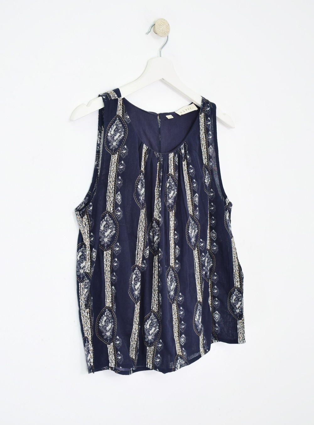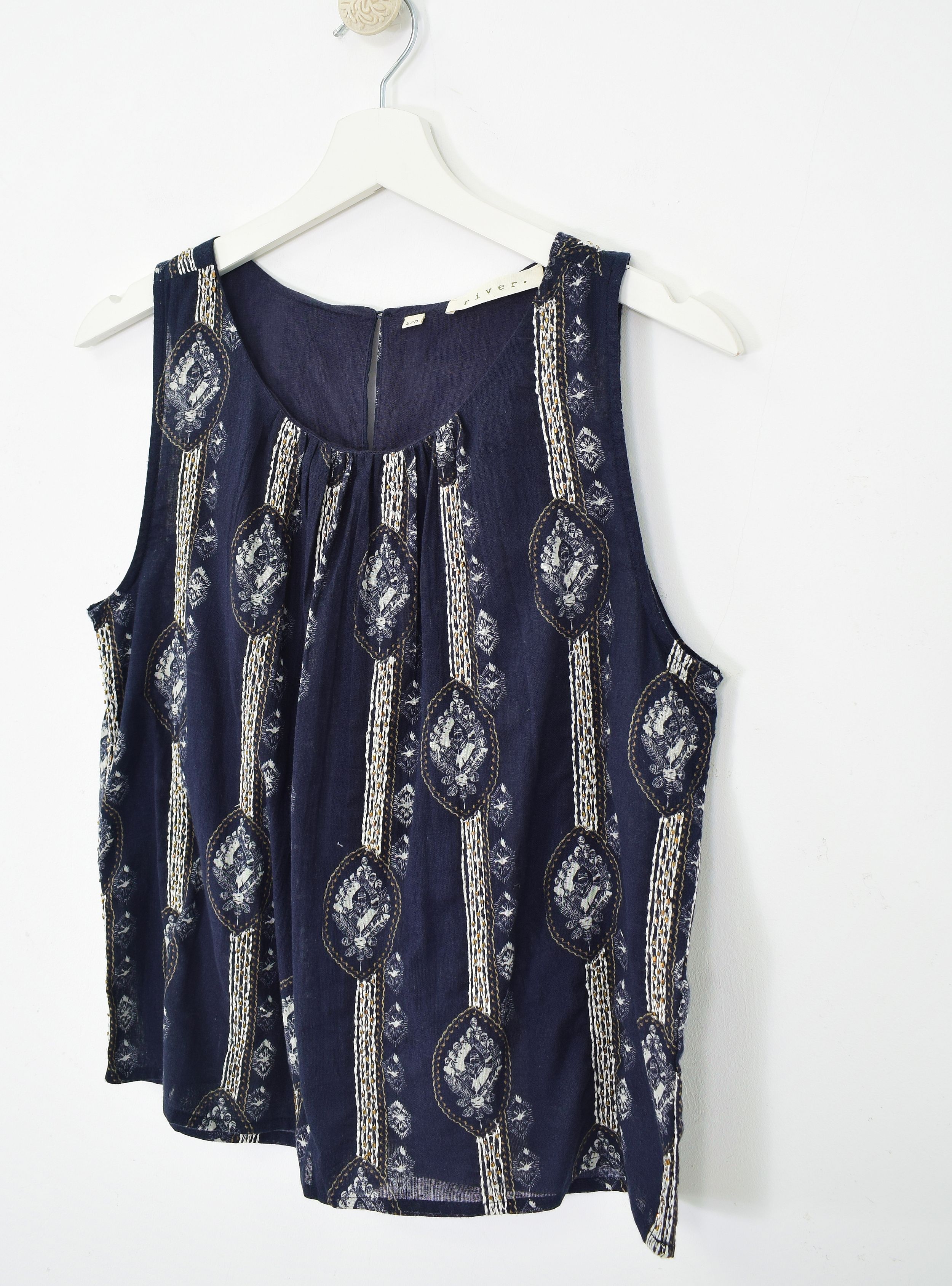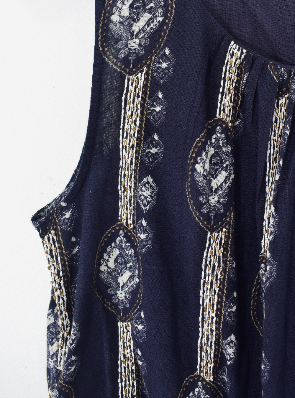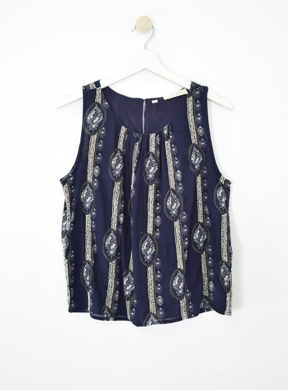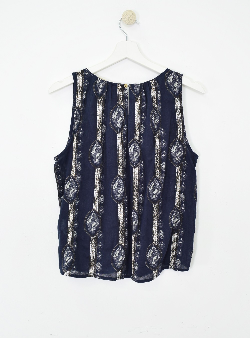 Top de tirante ancho en tejido de algodón con estampados, bordados y cuentas que hacen que sea una prenda espectacular. Ligeramente transparente y con cierre en la espalda por un botón. Combínalo con la Falda set WAKAME para un total look de infarto.