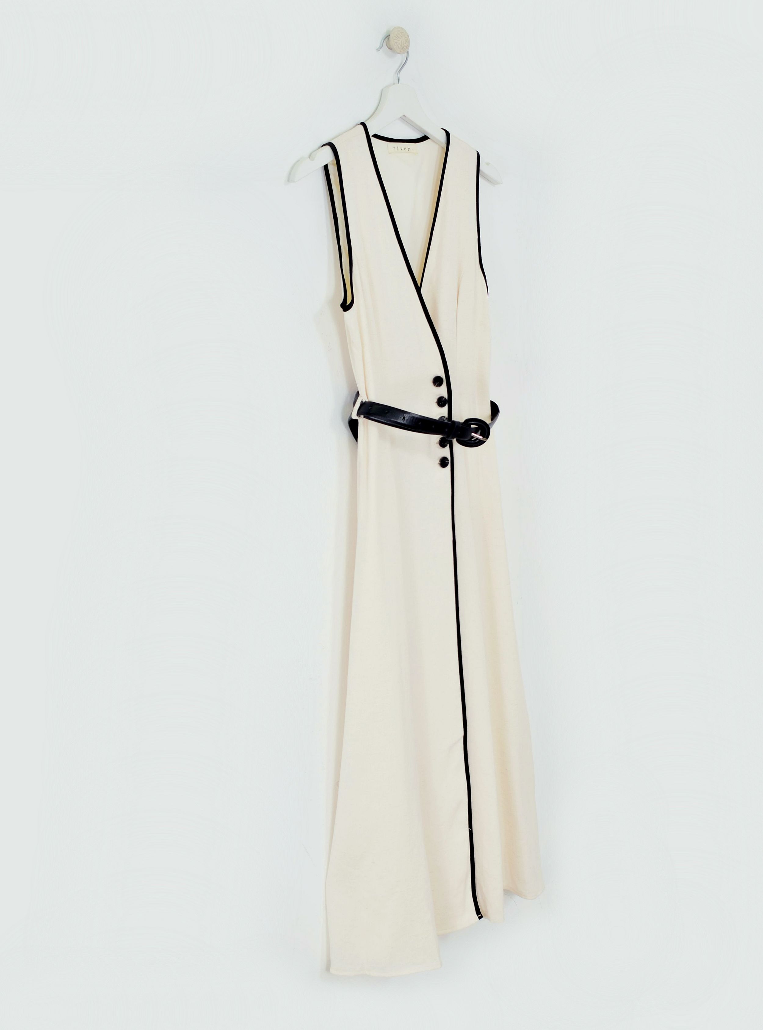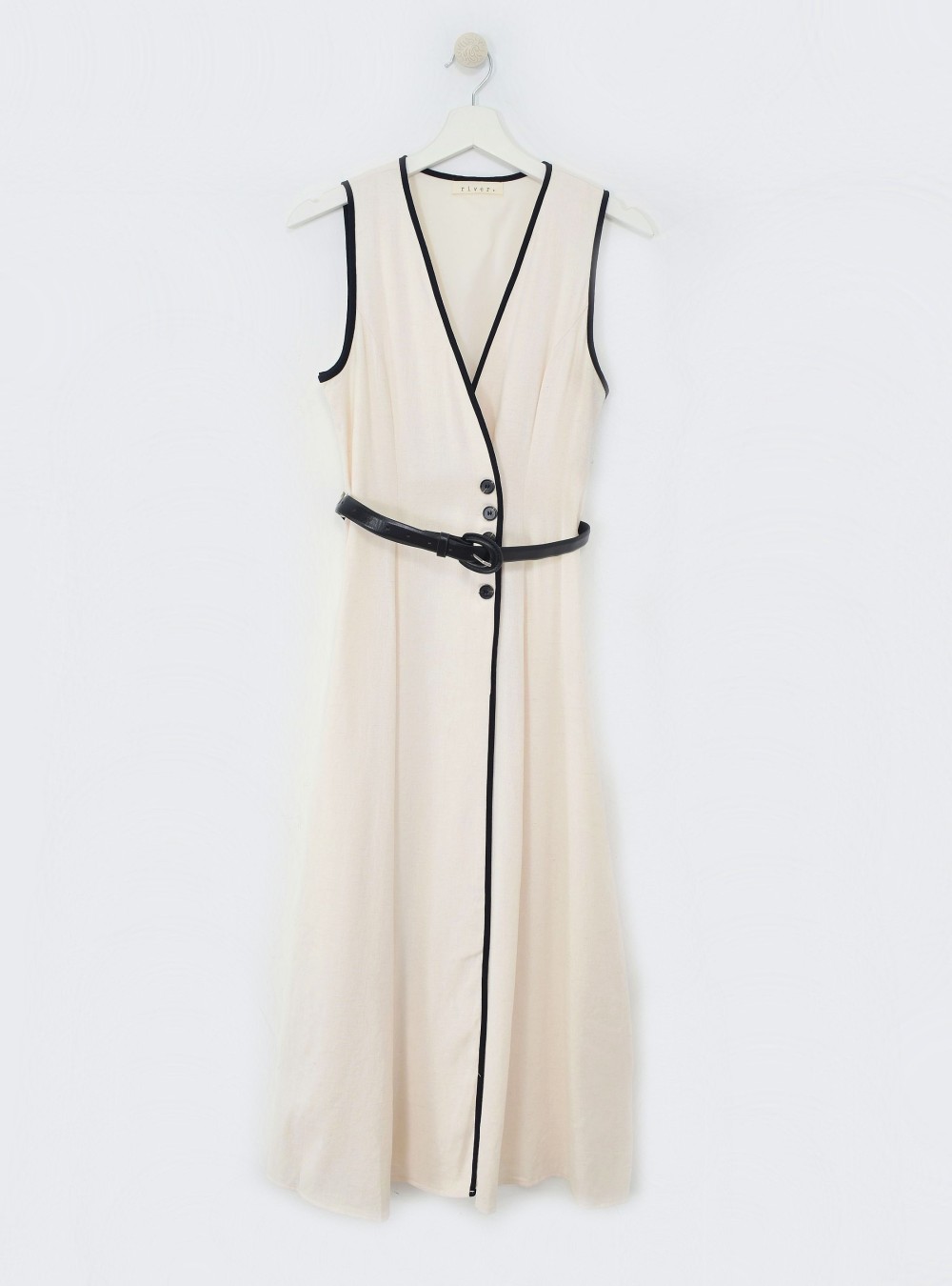 Vestido largo cruzado con cierre por botones y cinturón para ajustar en la cintura. Tiene forro. Tejido súper suave de rayón y lino, con mucha caída. Vestid espectacular que podrás empezar a combinar con chaquetas y jerséis hasta que ocupe el espacio principal en tus looks. Te recomendamos sandalias marrones, negras, doradas… como calzado para este vestido.