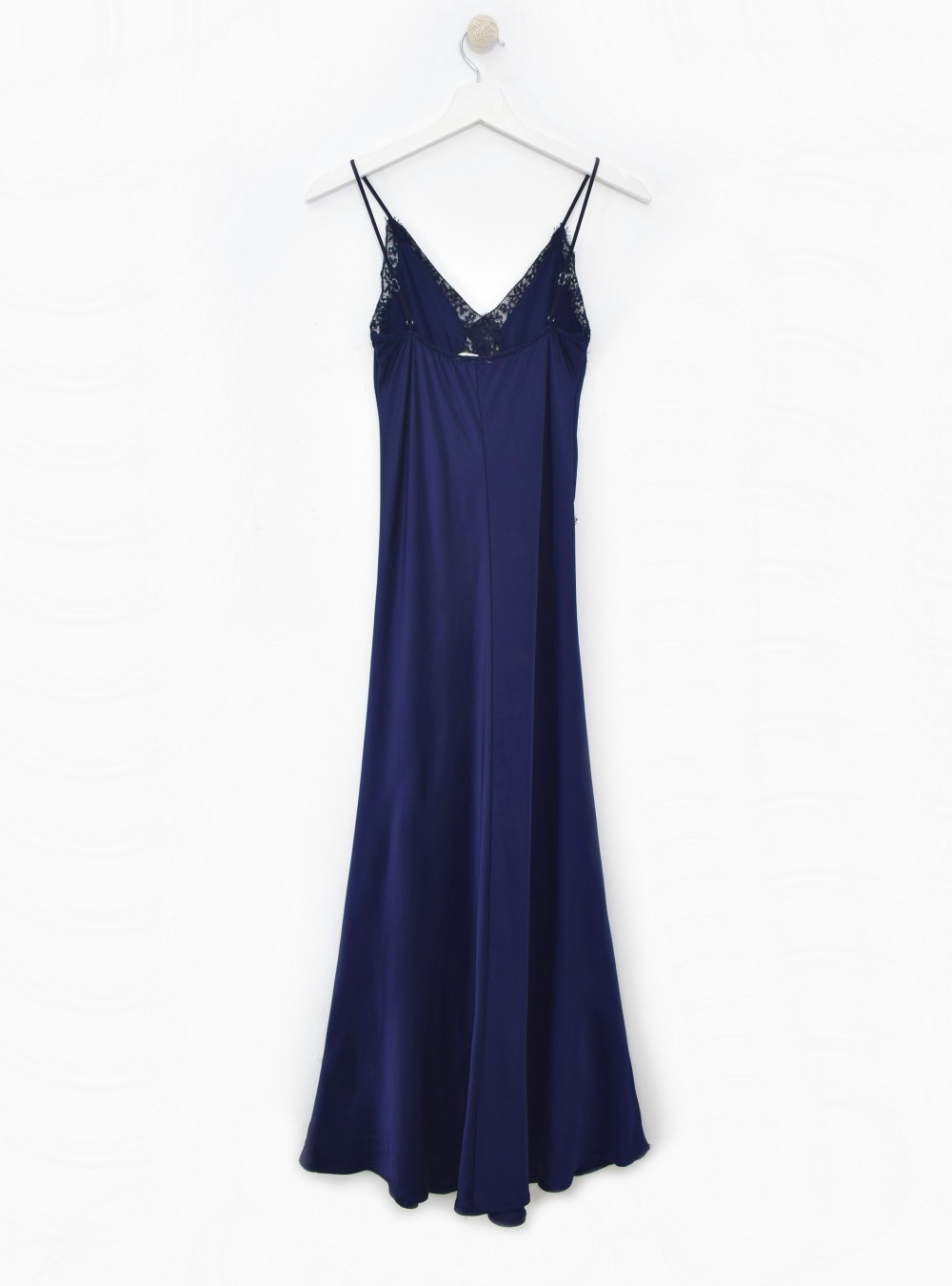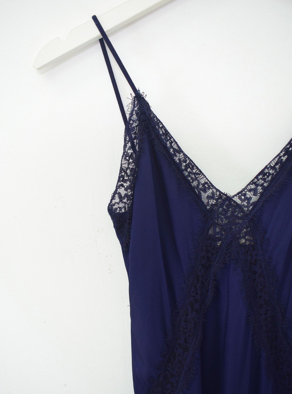Vestido largo lencero con bandas de encaje en la zona del pecho. Escote en uve. Tirantes regulables. Tejido con mucho movimiento. Puedes mezclarlo con un jersey de punto de corte amplio y unas zapatillas para un look de tendencia.